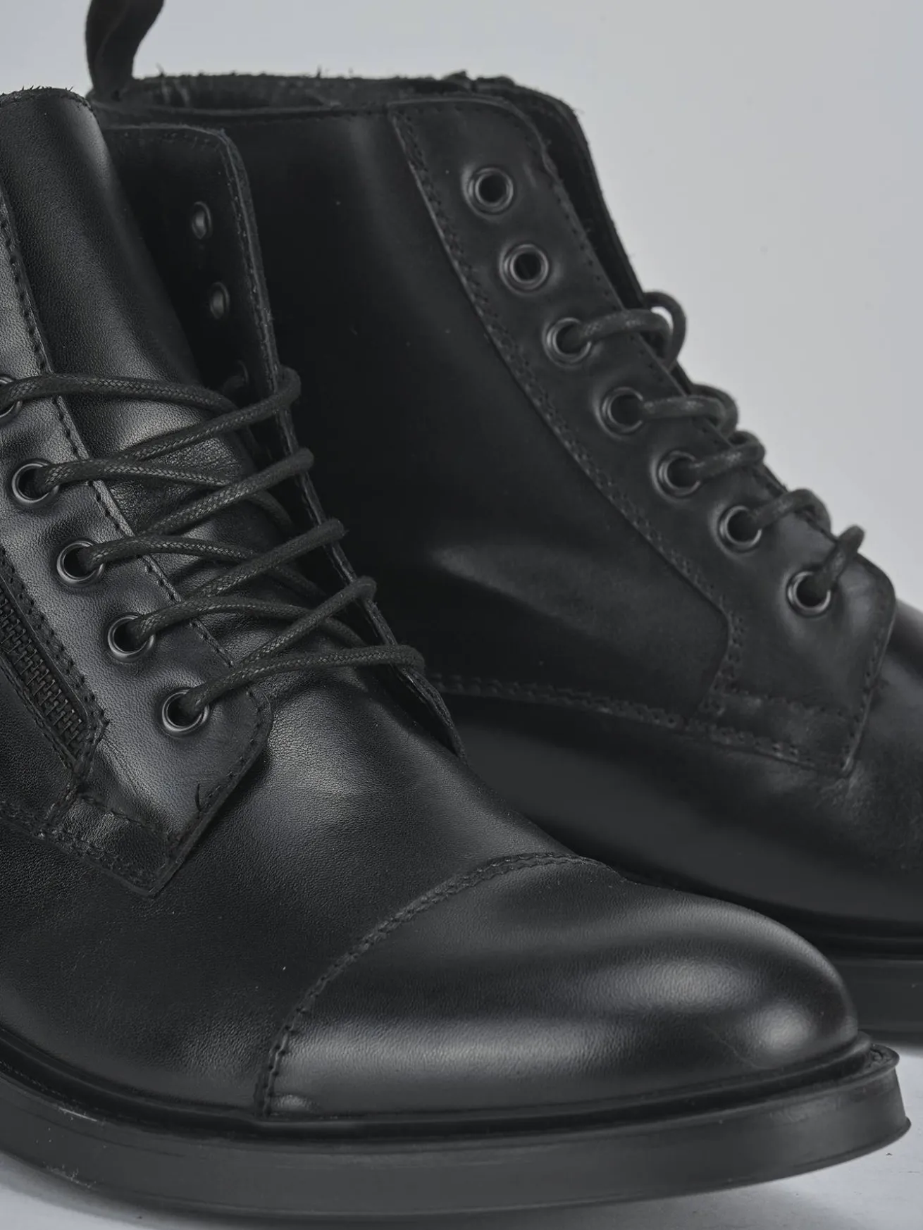 Le cuciture visibili aggiungono un dettaglio elegante, mentre i lacci con occhielli in metallo garantiscono una chiusura sicura e resistente.