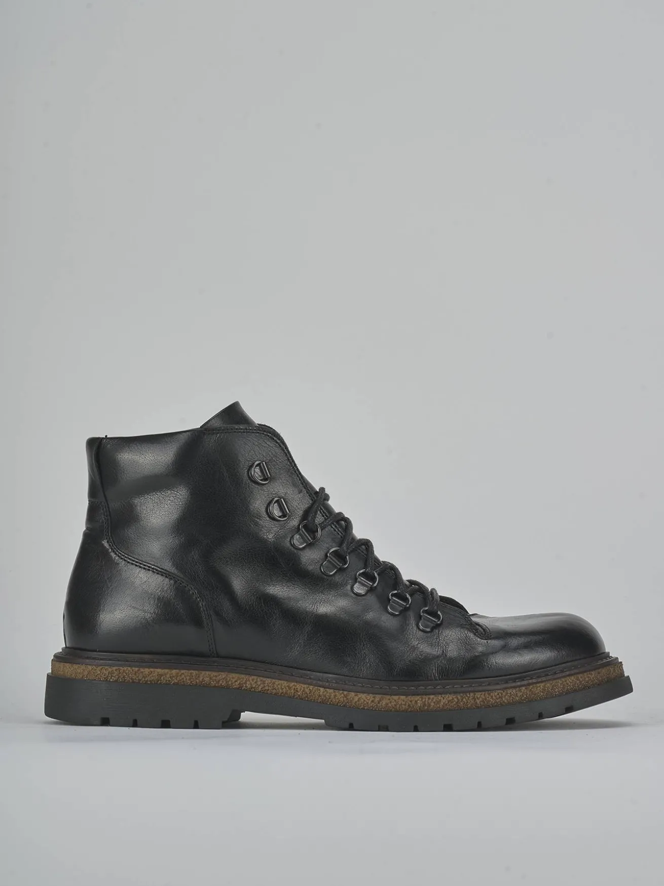 Gli occhielli in metallo e i lacci robusti garantiscono una chiusura sicura e un aspetto deciso.