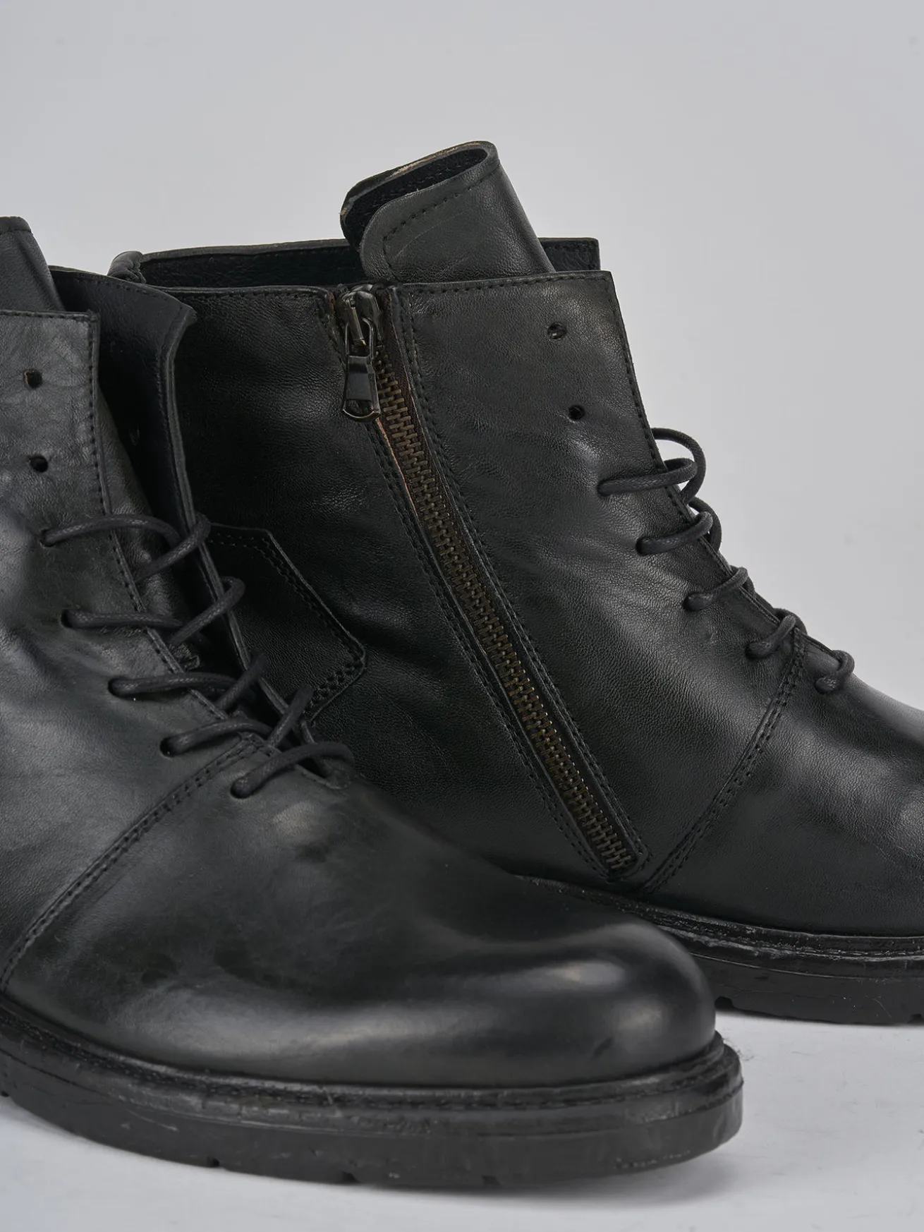 Realizzati in morbida pelle, questi anfibi si distinguono per la loro raffinata tomaia e la punta tonda.