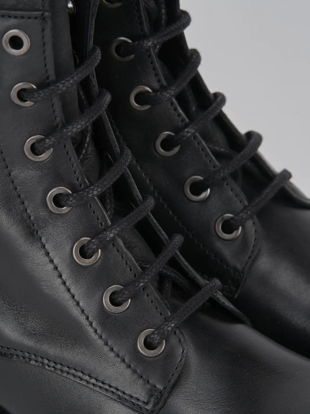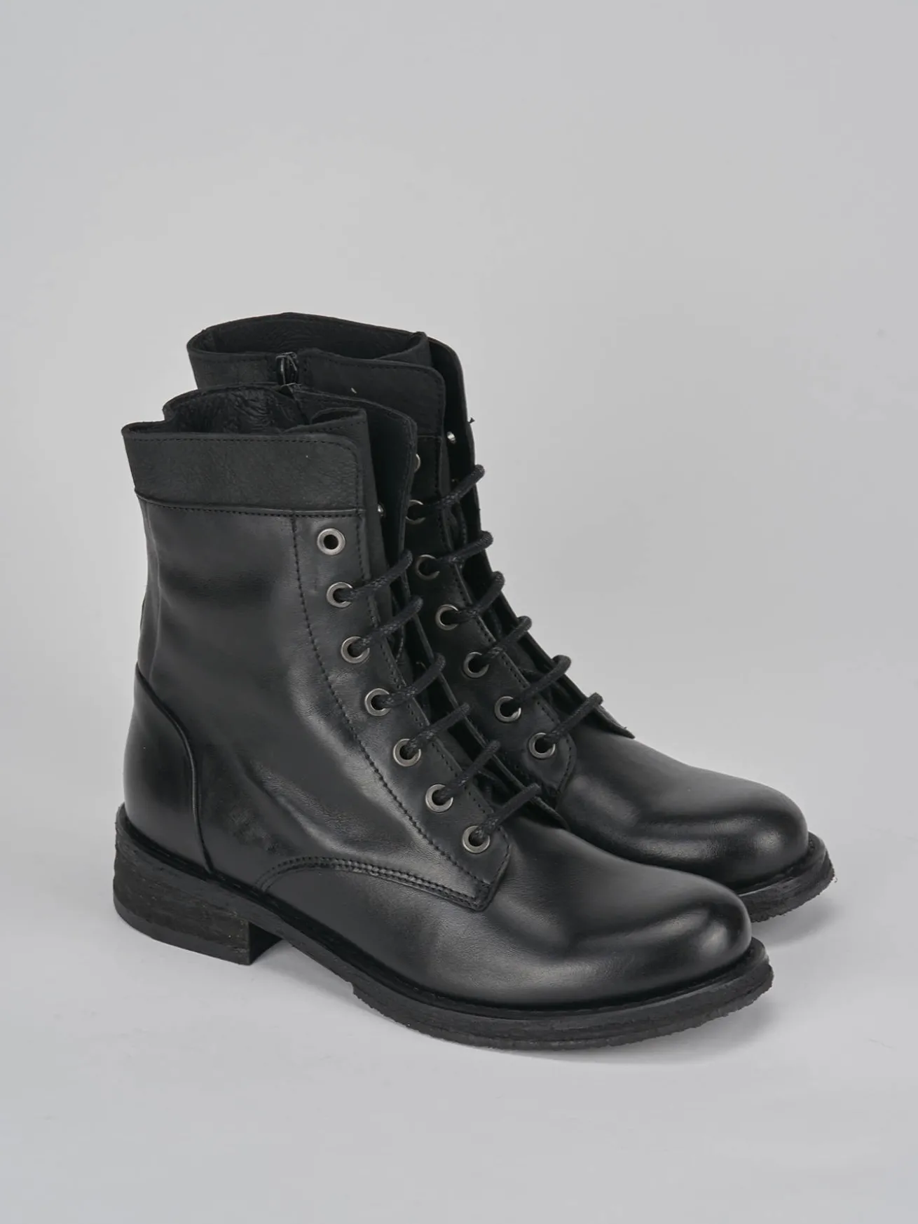 Anfibio tacco 2 cm fondo in cuoio con riporti in gomma e soletto interno in vera pelle. Tomaia in morbida pelle, punta tonda, lace con occhielli in metallo e doppia cerniera. adatto e versatile per ogni tuo look.