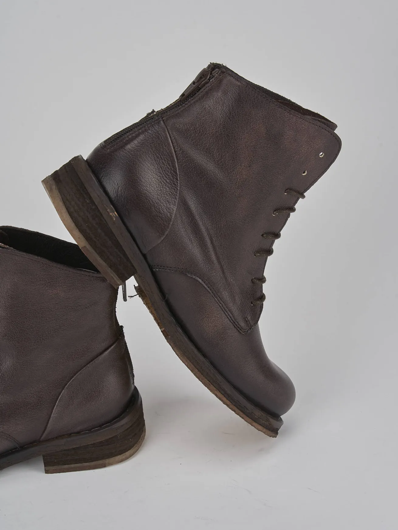 La tomaia in morbida pelle avvolge il piede con eleganza, mentre la punta tonda e il lace donano un tocco di modernità.