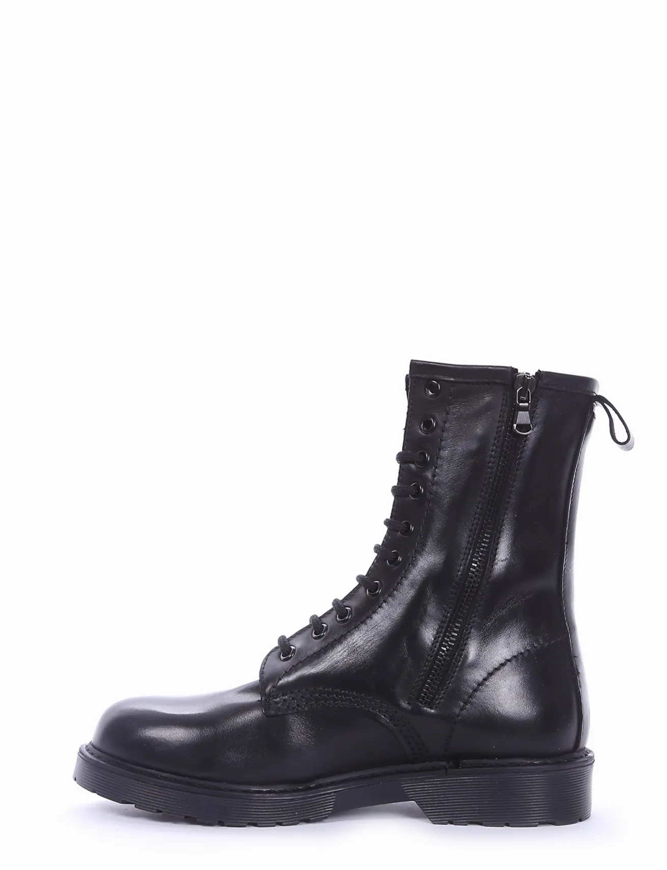 Anfibio tacco 2cm, fondo gomma e soletto interno in vera pelle. Tomaia in morbida nappa e allacciatura a 10 buchi per un classico senza tempo.