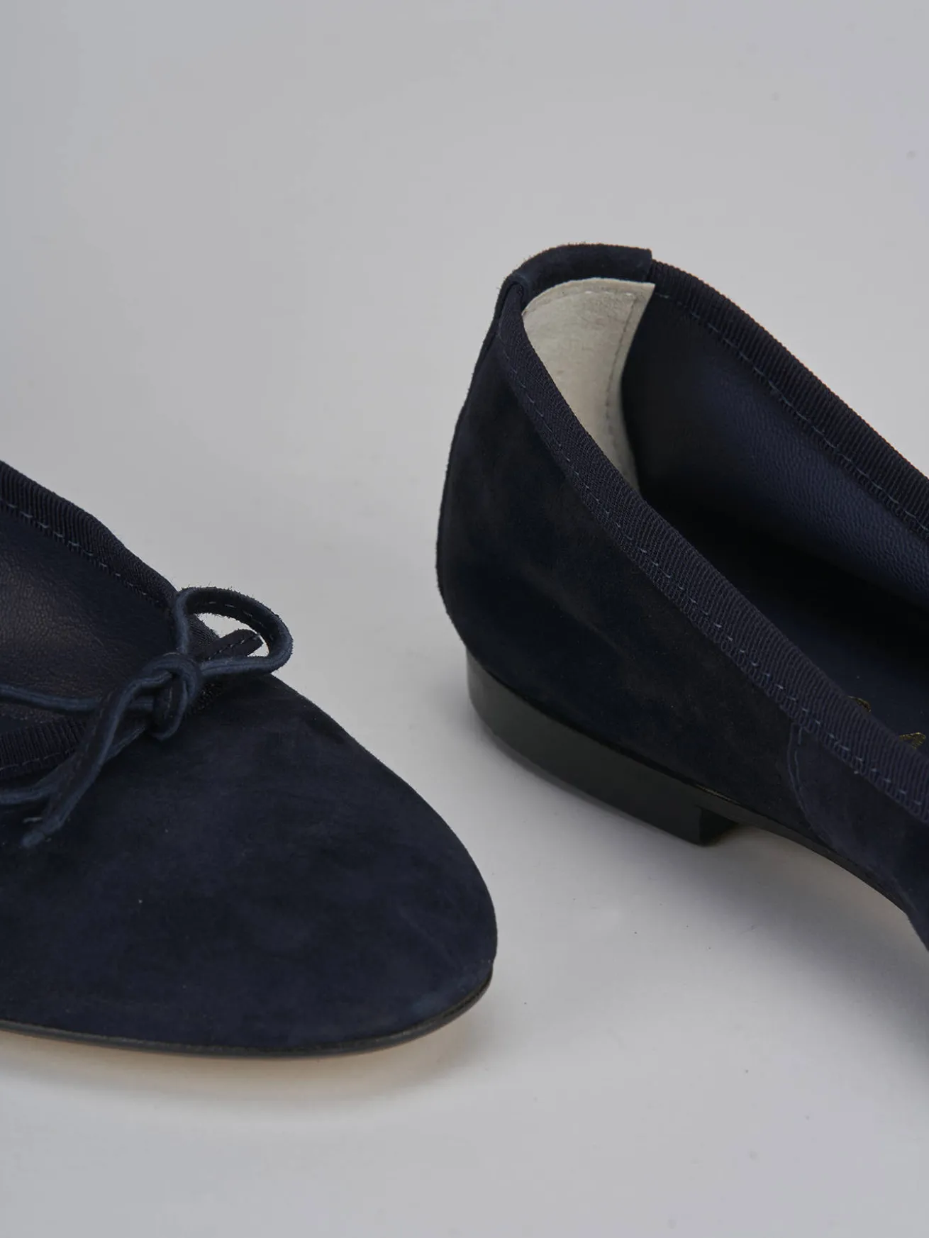 La tomaia in morbido camoscio abbraccia il piede, mentre la punta tonda e il delicato fiocchetto conferiscono un tocco di femminilità sobria.