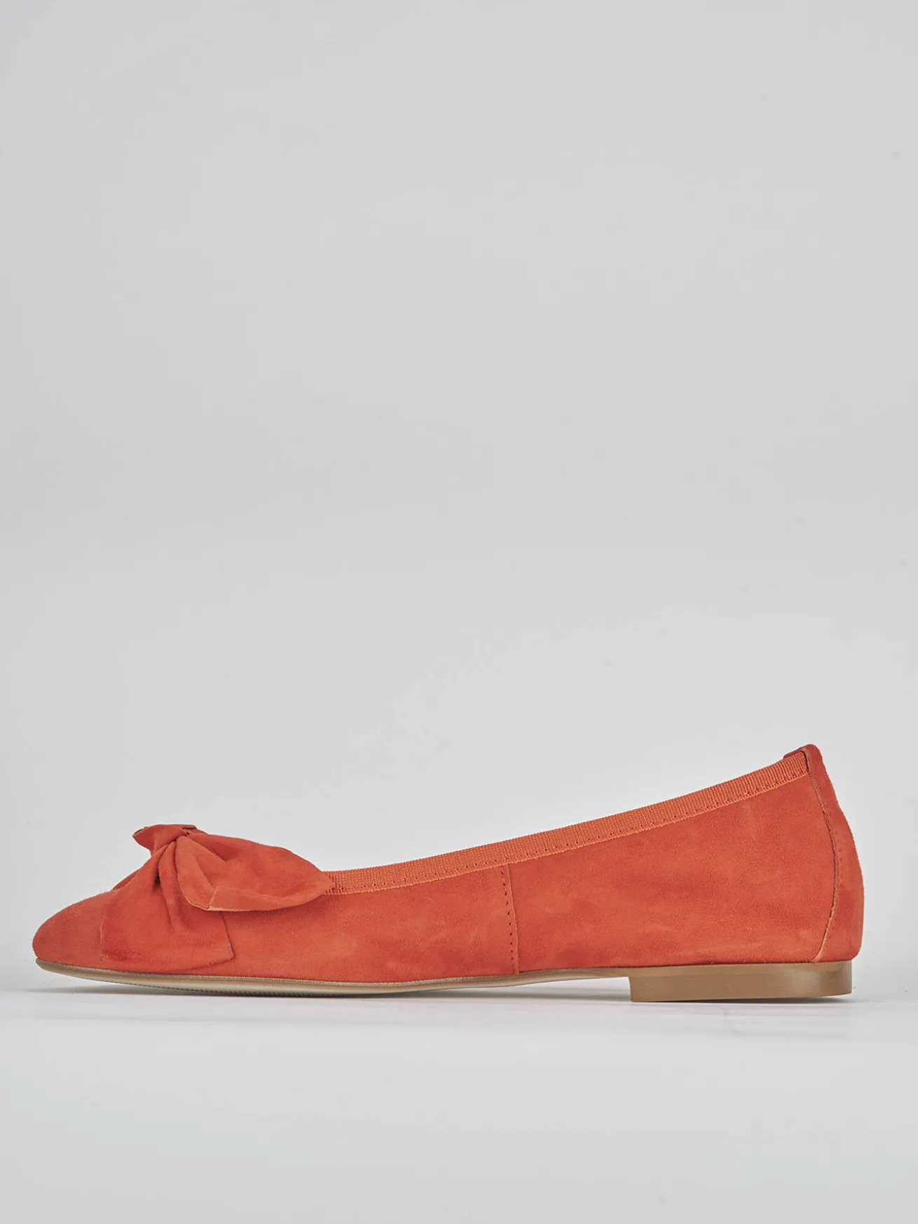 La tomaia in morbido camoscio accarezza il piede, mentre la punta tonda e il fiocco aggiungono un dettaglio femminile delicato.