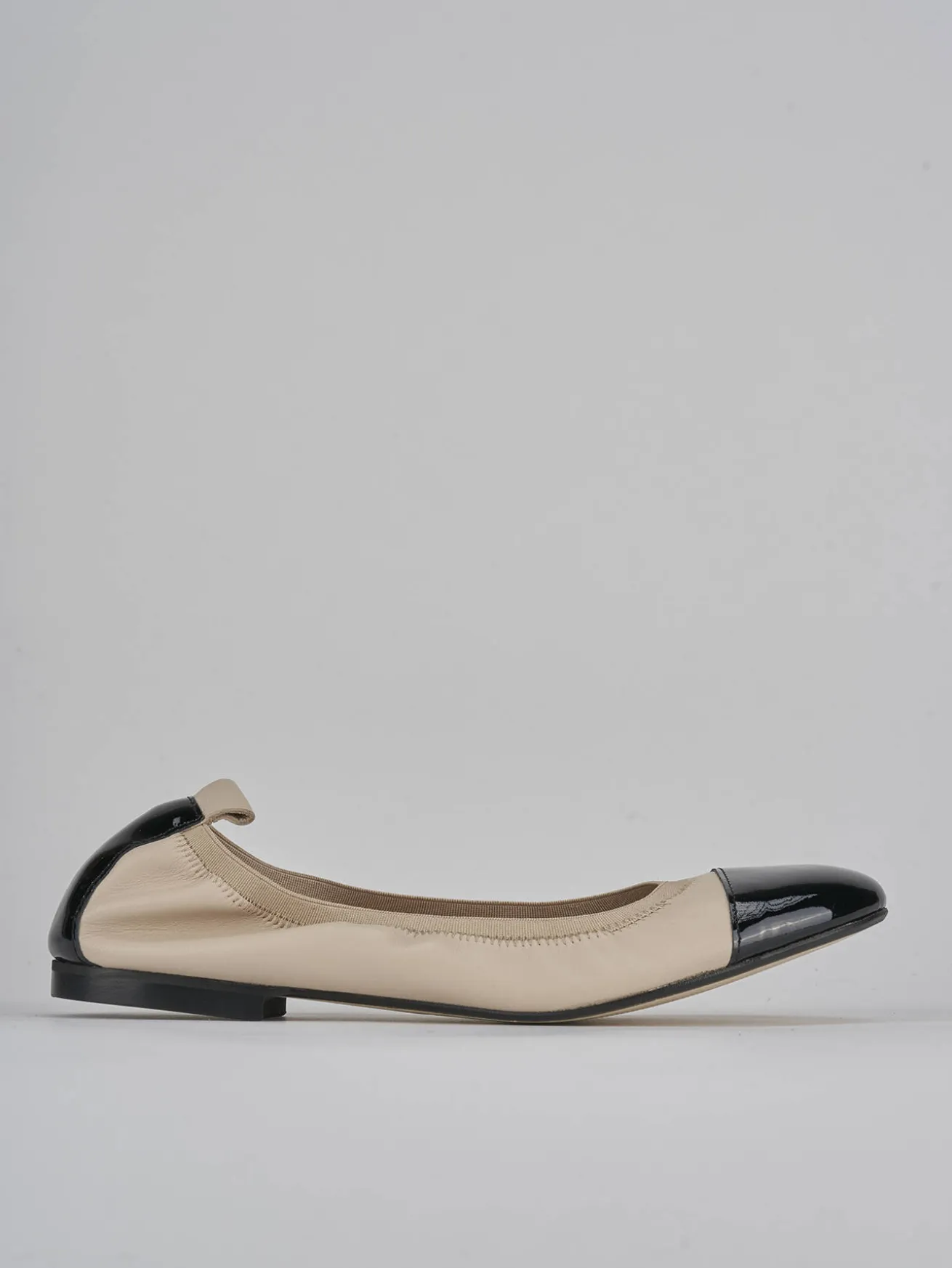 La tomaia è realizzata in morbida pelle, abbinata a riporti in vernice nera a contrasto, che aggiungono un tocco di sofisticatezza.