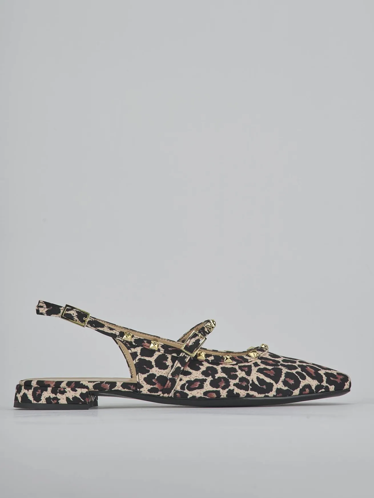 La punta sfilata e lo scollo morbido a ‘U’ conferiscono un tocco di raffinatezza, mentre il fiocco e le borchie aggiungono un elemento di carattere.