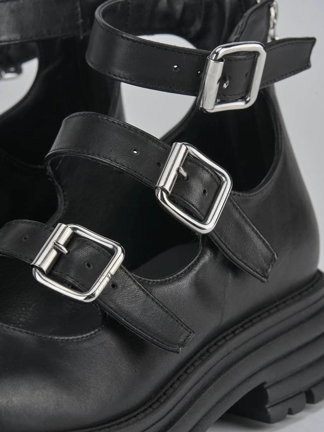 I tre cinturini sul collo del piede fino alla caviglia, con fibbia regolabile, garantiscono una calzata sicura e personalizzata.