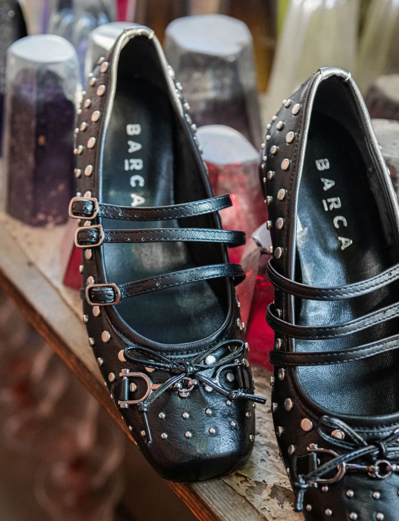 Le borchie decorative e il fiocco con accessorio in punta conferiscono un look cool e alla moda.