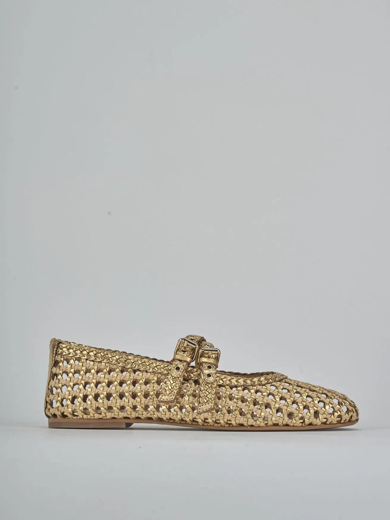 La tomaia è realizzata in morbida pelle laminata intrecciata, con un design bicolor che aggiunge un tocco di raffinatezza.