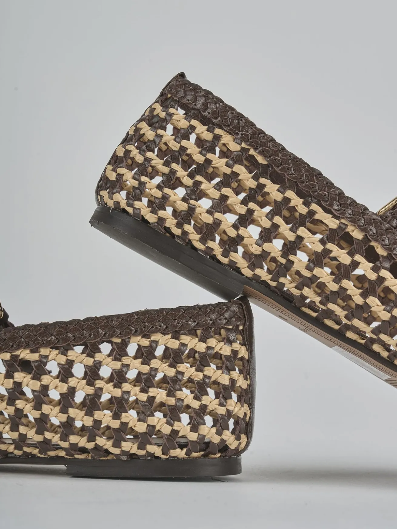 La tomaia è realizzata in morbida pelle intrecciata forata bicolor, che offre un design sofisticato e traspirante.