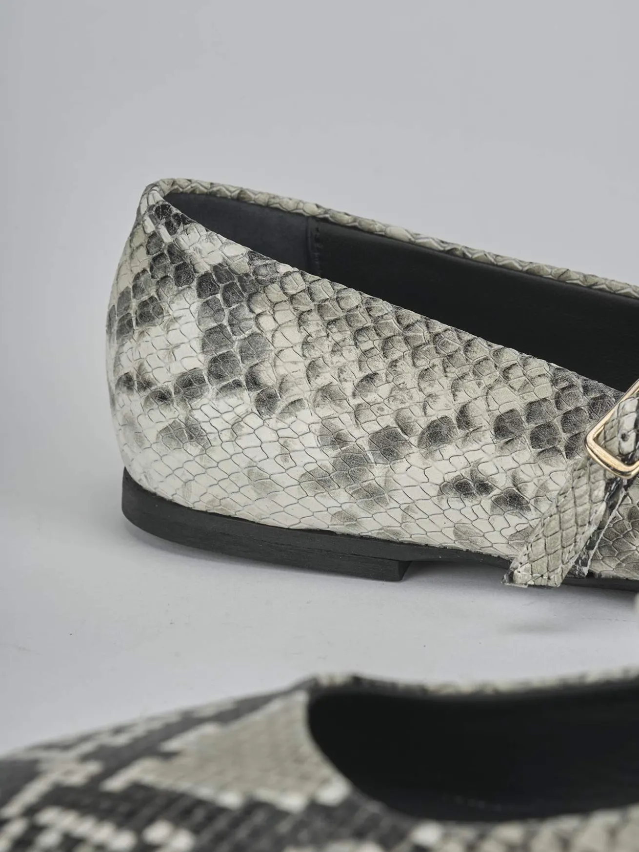 La tomaia è realizzata in morbida pelle con una stampa effetto pitone, che aggiunge un tocco di originalità al tuo outfit.