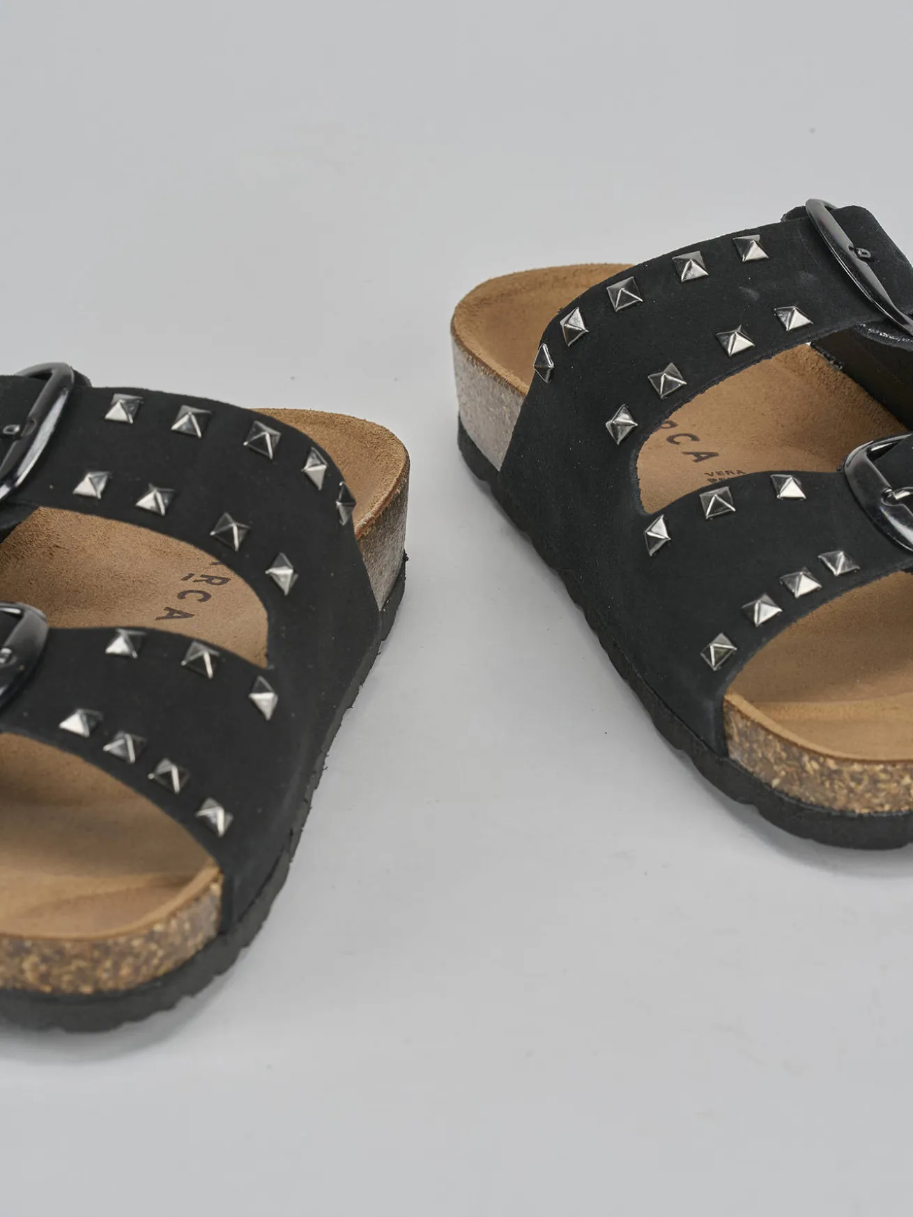 La tomaia in morbido camoscio avvolge il piede con delicatezza, mentre le due fasce con fibbie regolabili offrono un look semplice e versatile.