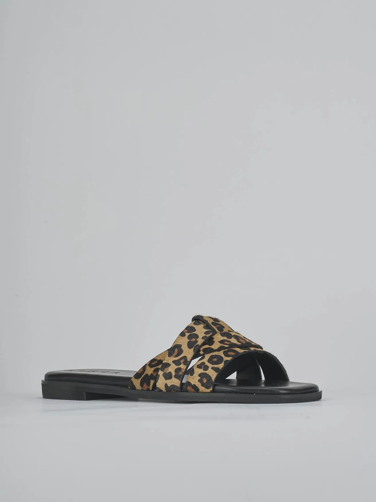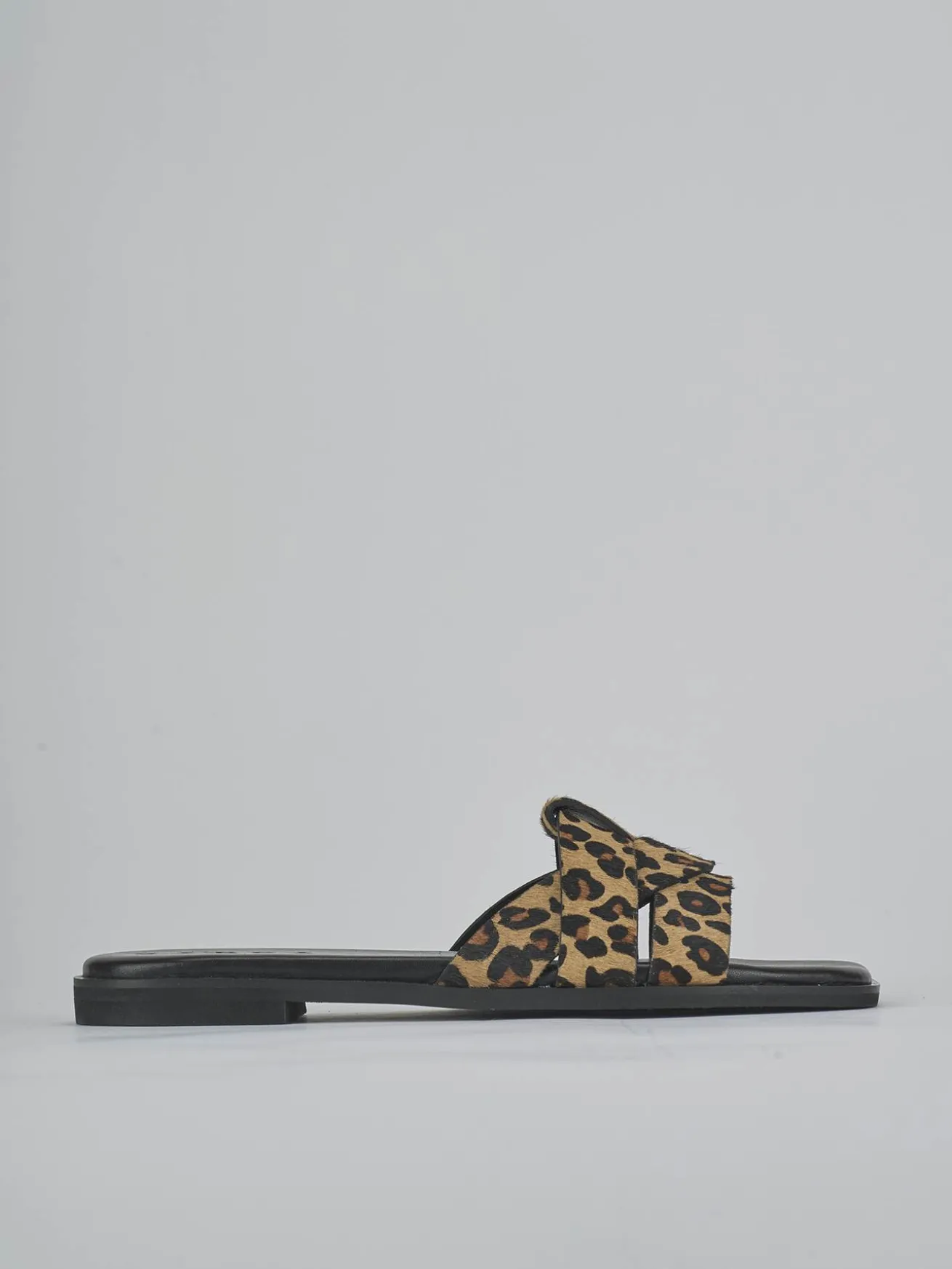 Realizzate con una tomaia in morbida pelle ricoperta di cavallino stampato leopardo, queste ciabatte offrono uno stile unico e alla moda.
