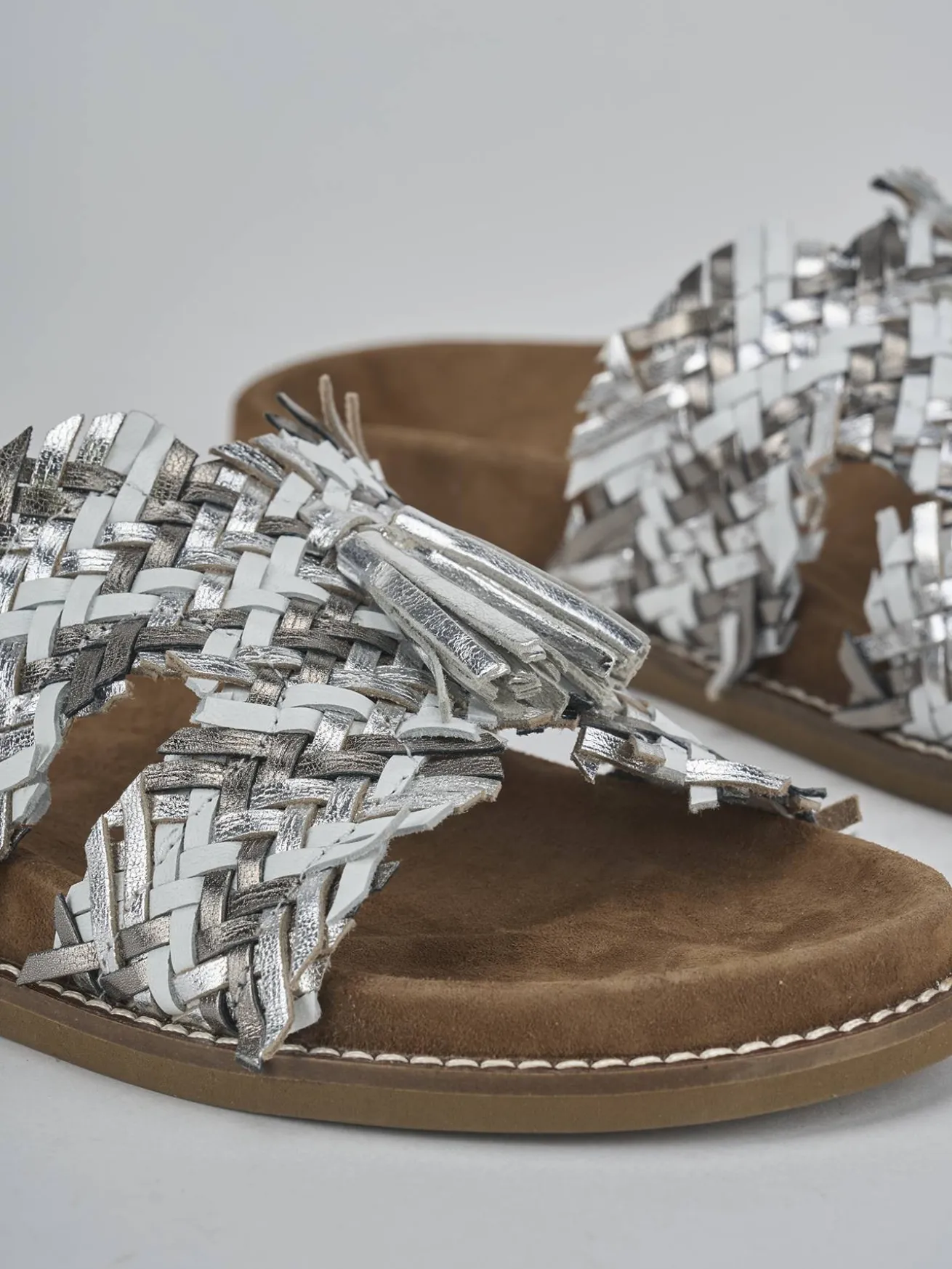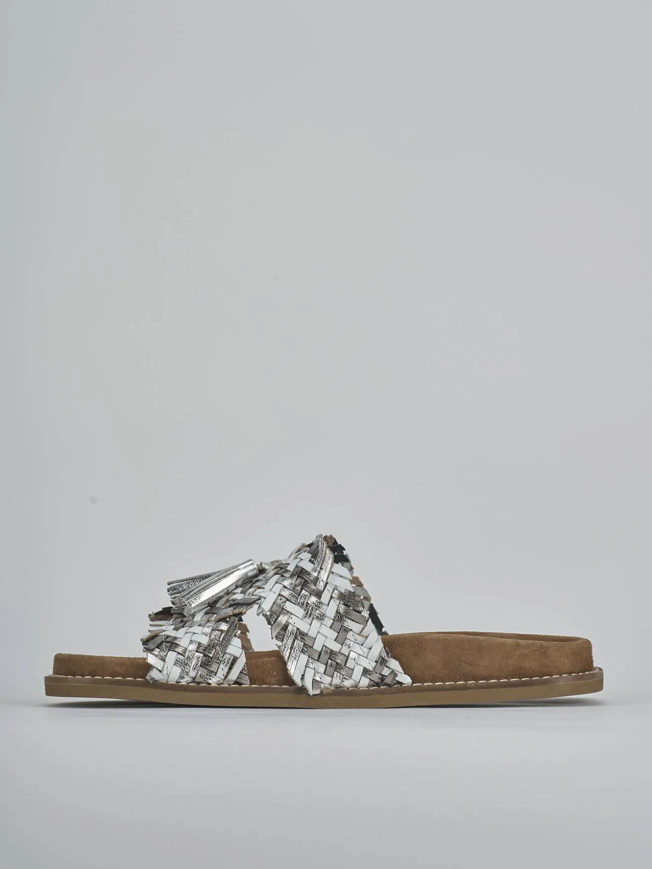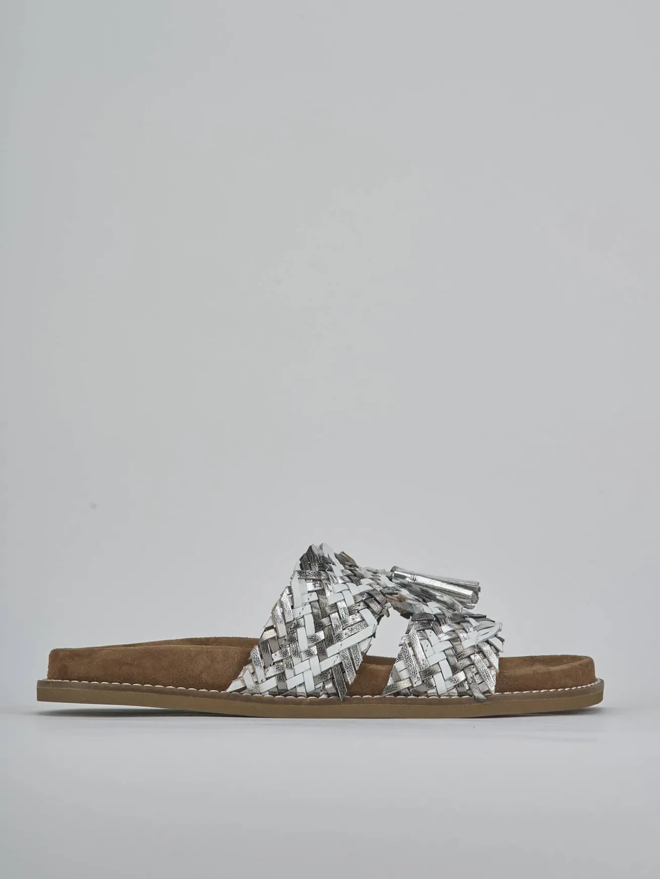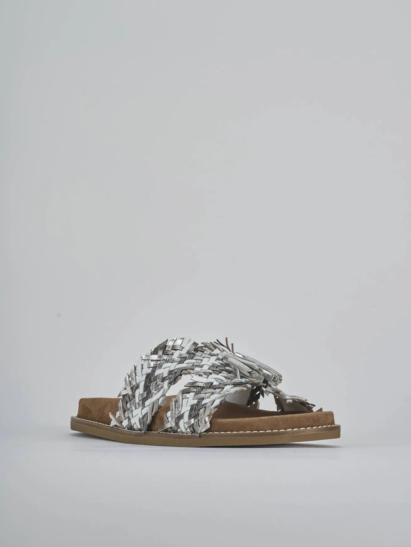 La tomaia è realizzata in morbida pelle laminata, finemente intrecciata, che dona un tocco di raffinatezza al tuo look quotidiano.