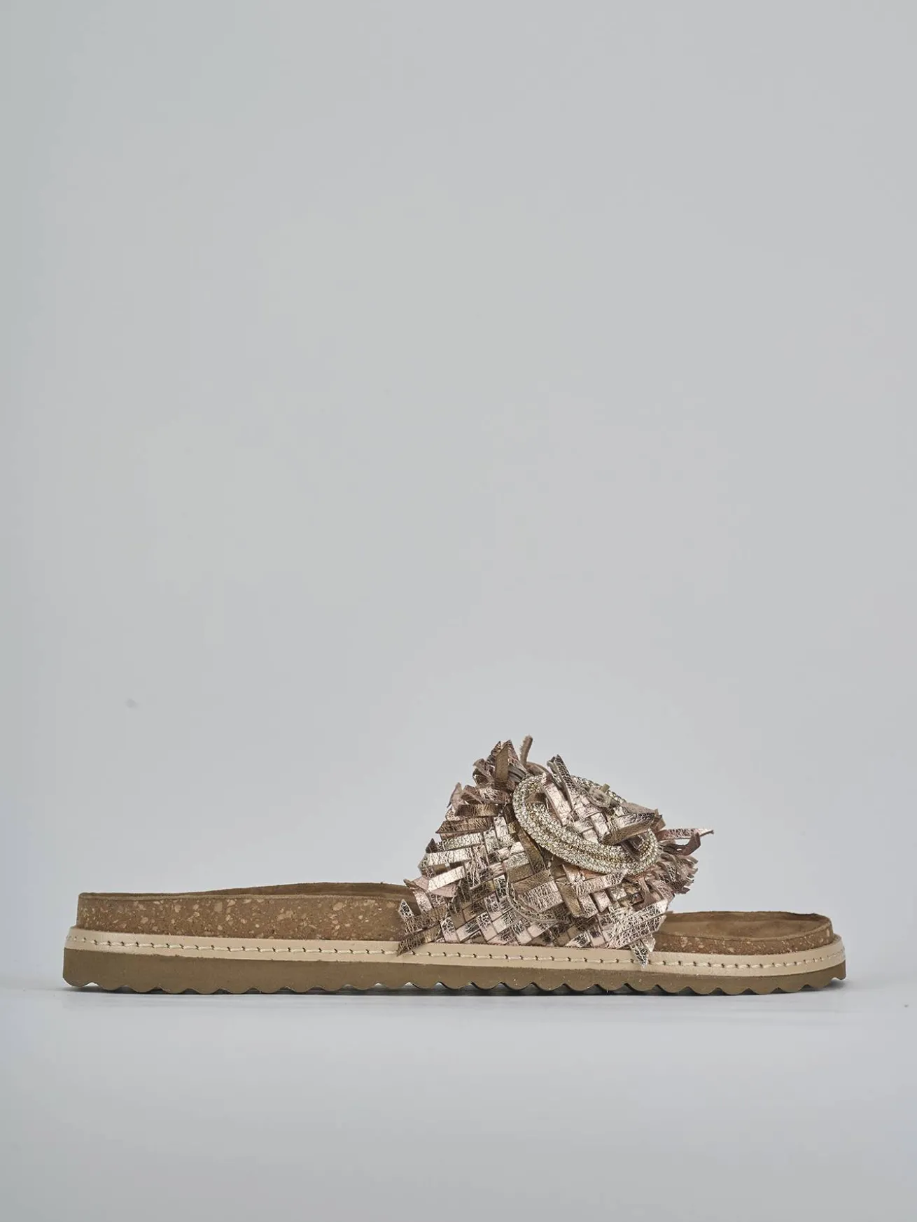 La tomaia è realizzata in morbida pelle laminata, finemente intrecciata, che dona un aspetto sofisticato e moderno.