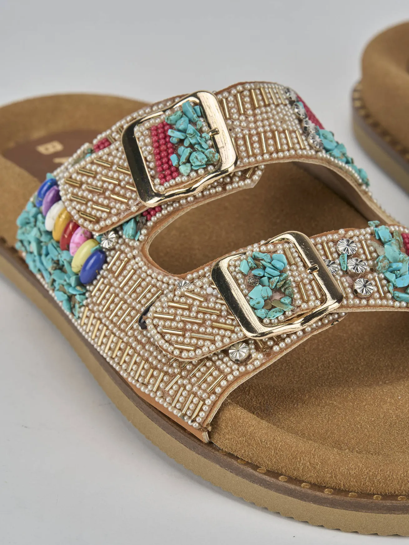 La tomaia è impreziosita da strass e miniborchie, aggiungendo un tocco brillante ai tuoi outfit.