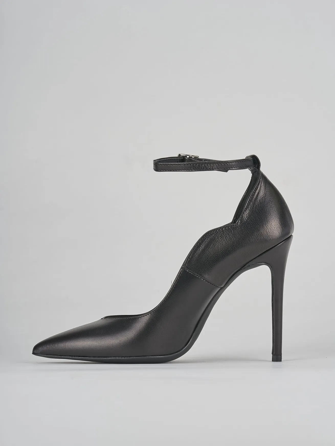 La tomaia in morbida nappa avvolge il piede con delicatezza, mentre l’elegante cinghietta alla caviglia aggiunge un dettaglio sofisticato.