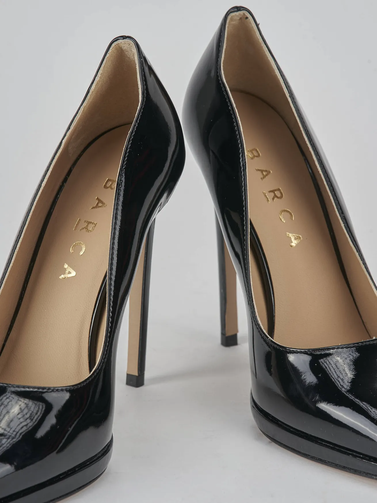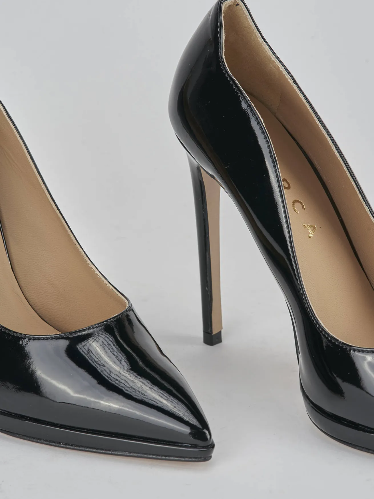 La tomaia in morbida pelle effetto verniciato dona un tocco di lusso e raffinatezza.