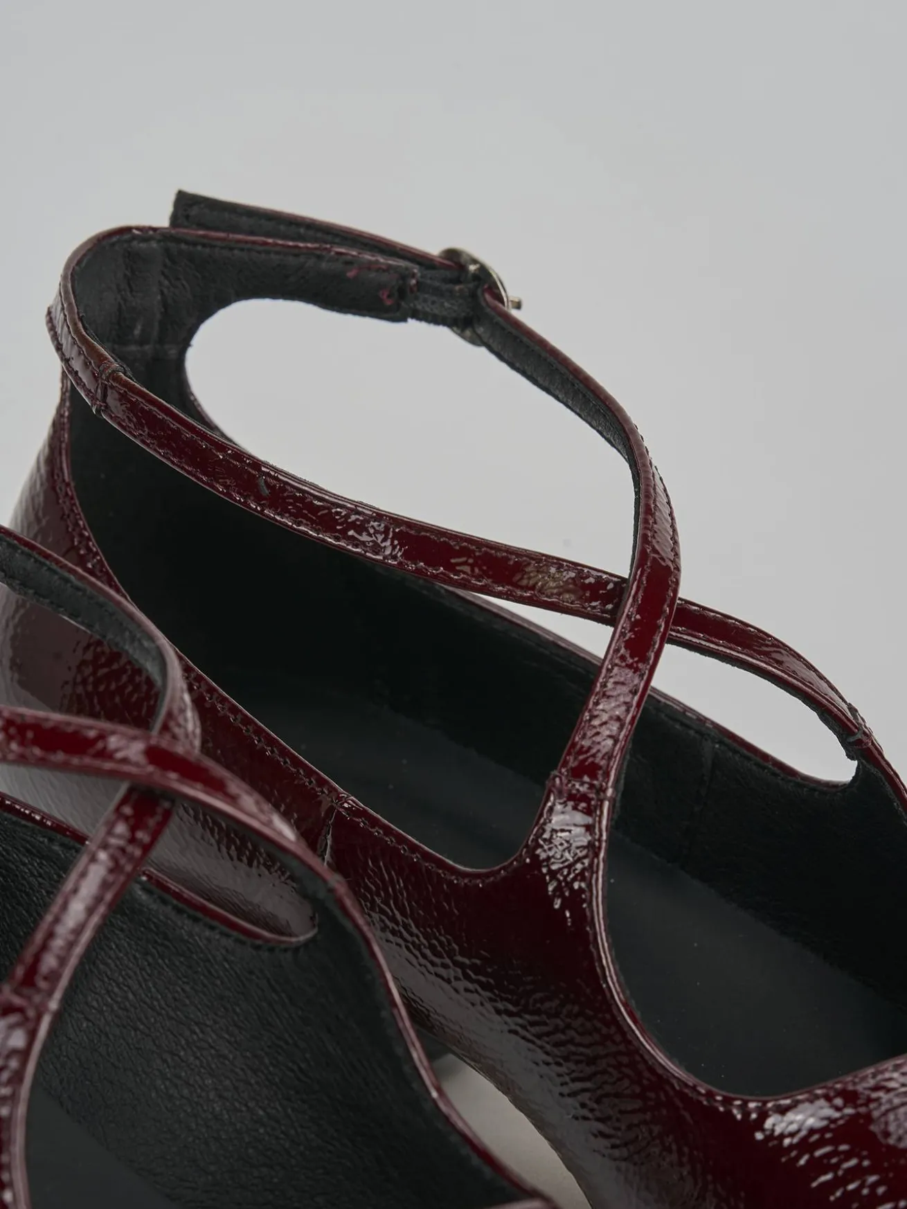 La tomaia in morbida pelle effetto verniciato dona un aspetto lucido e sofisticato, mentre la punta affusolata e lo scollo dolce a ‘U’ aggiungono un tocco di femminilità.