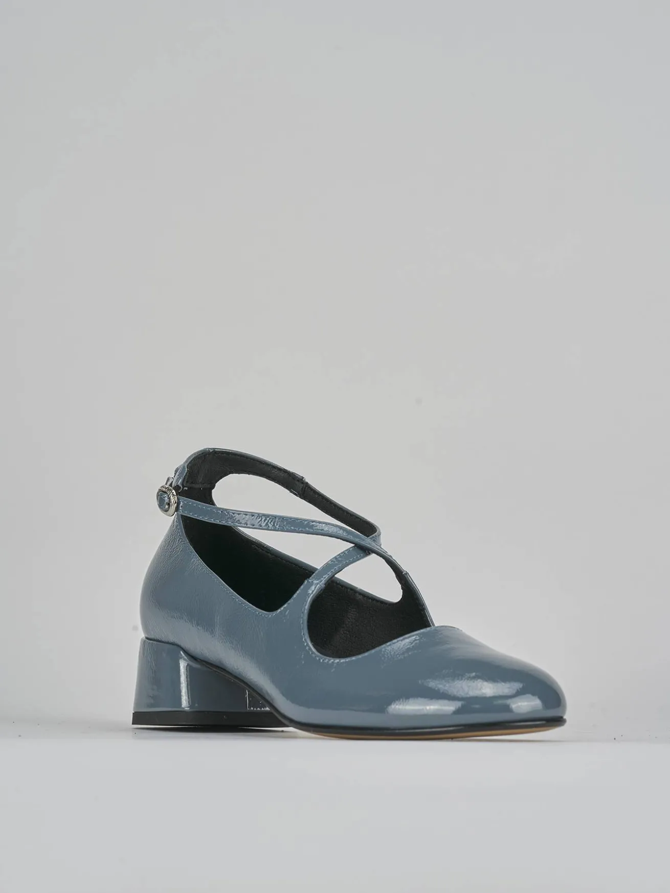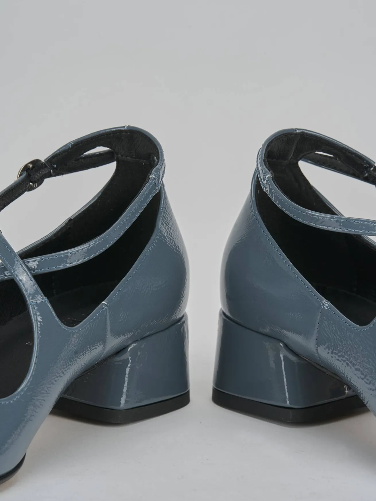 La tomaia è realizzata in morbida pelle con un elegante effetto verniciato, mentre la punta affusolata e lo scollo dolce a ‘U’ conferiscono un tocco sofisticato.