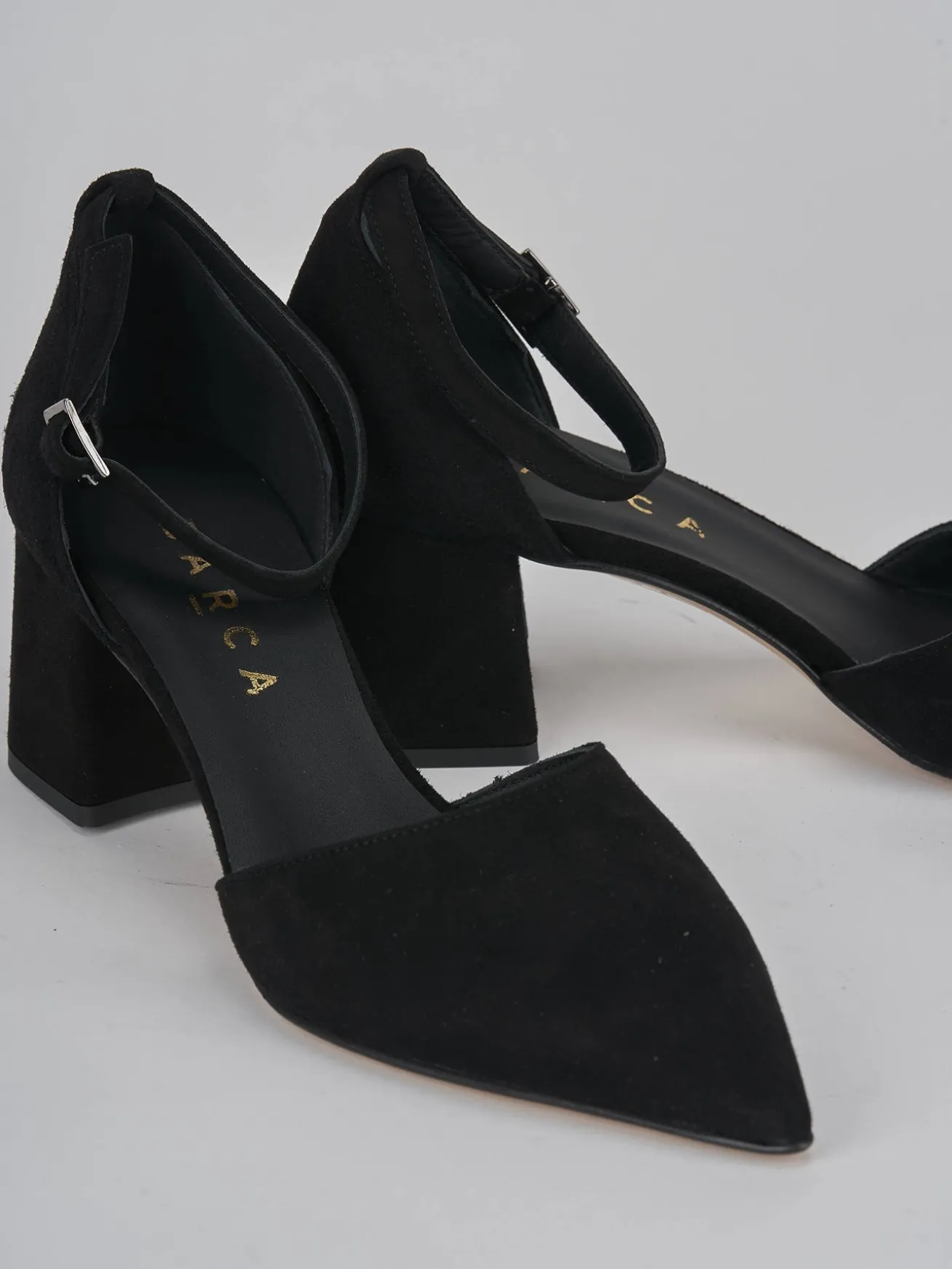Bebè tacco 5 cm fondo in leggera gomma e soletto interno in vera pelle. Tomaia in morbido camoscio, punta sfilata, cinturino regolabile in caviglia, tallone chiuso e tacco grosso. dalle linee definite ed essenziali, perfetto con qualsiasi tuo outfit.