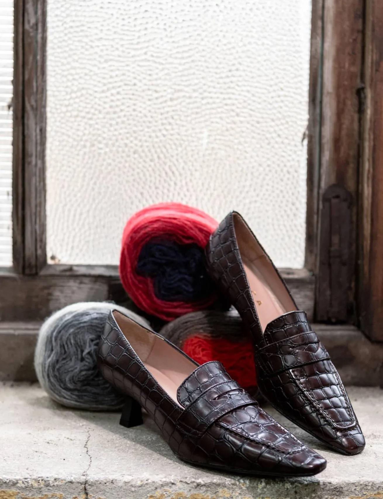 La punta sfilata e le cuciture in rilievo donano un aspetto slanciato e chic, mentre la mascherina a bocca di leone e la linguetta leggermente allungata aggiungono dettagli unici.