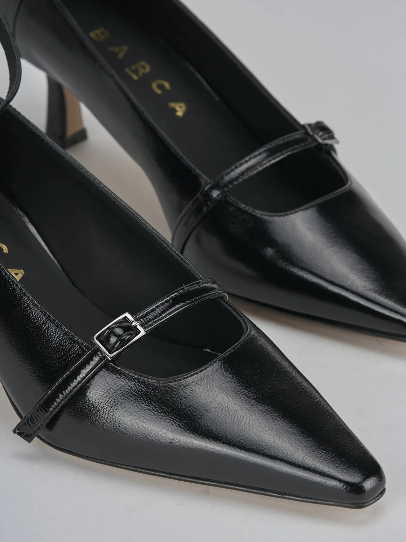 Realizzate in morbida pelle effetto verniciato, queste scarpe presentano una punta sfilata e uno scollo morbido a ‘U’ che avvolge delicatamente il piede.