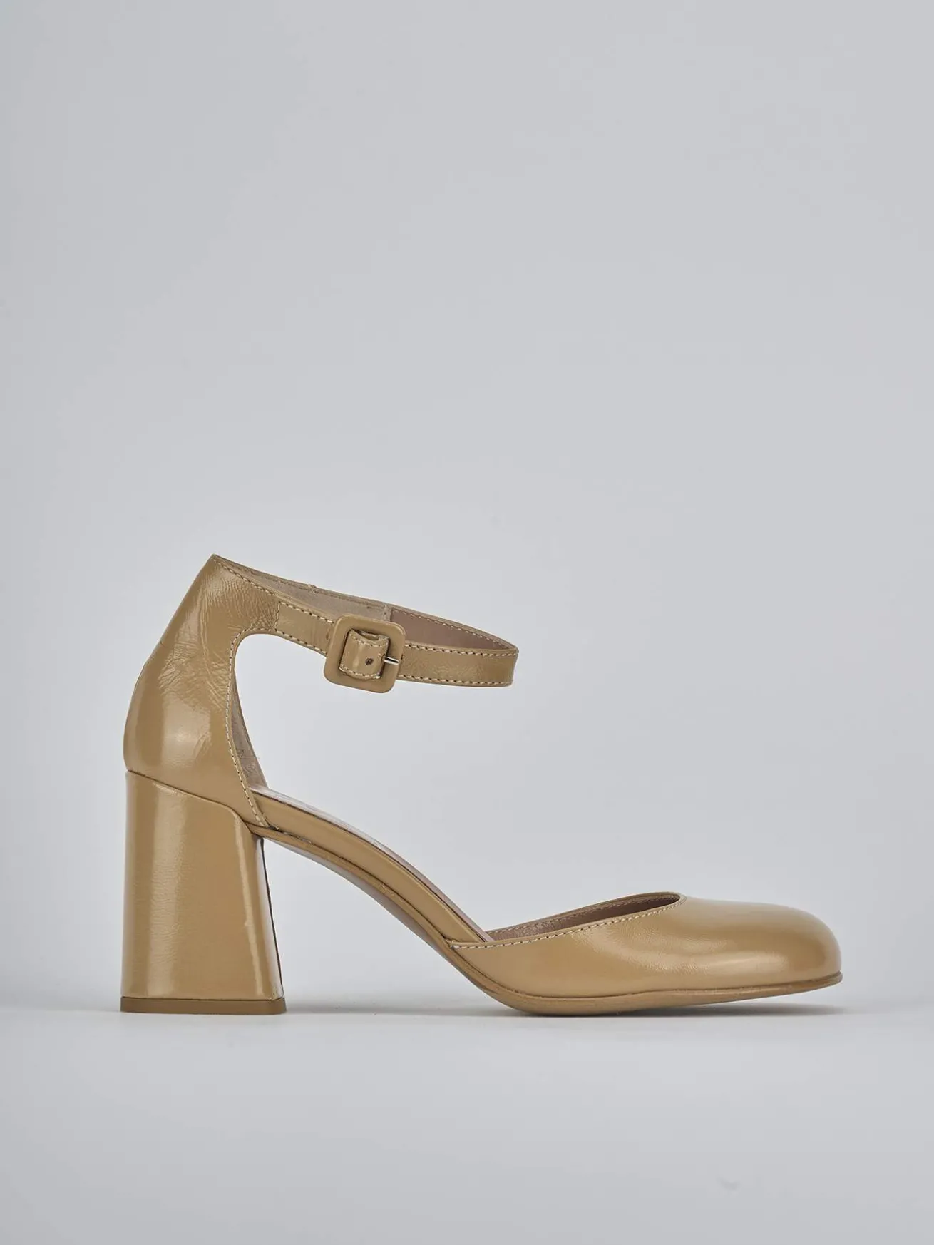 Bebè tacco 6 cm fondo in leggerissima gomma e soletto interno in vera pelle. Tomaia in morbida pelle, punta leggermente squadrata, scollo a ‘V’, cinturino con fibbia regolabile in caviglia, cuciture a mano e tacco comodo. Ideali sia con un vestito sia con un paio di pantaloni.