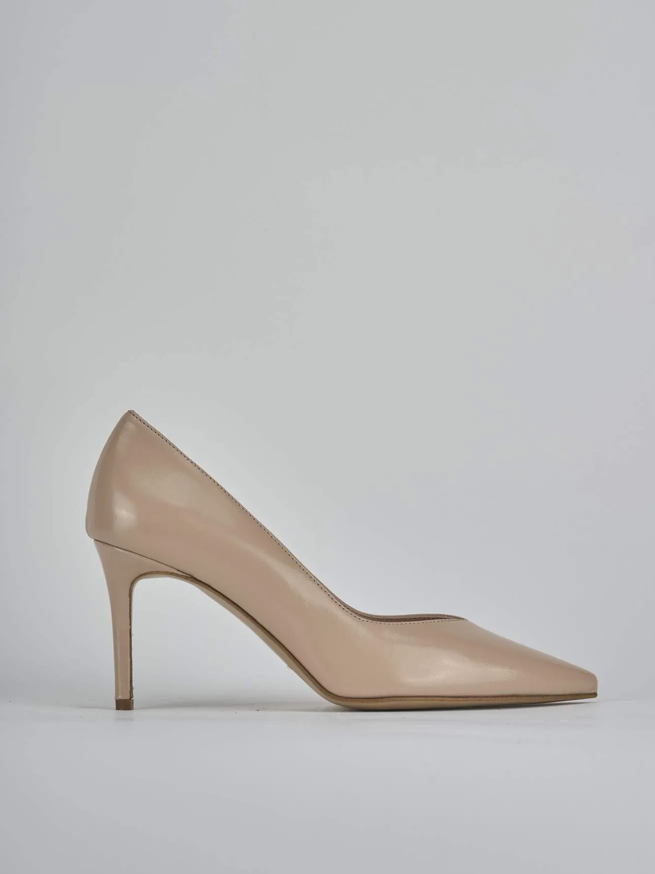 Decolte’ tacco 7 cm fondo in cuoio e soletto interno in vera pelle. Tomaia in morbida pelle nappata, punta sfilata, scollo a ‘V’, liscio e tacco fino. Dalle linee sempre eleganti e decise, perfetto sia con un jeans che con una gonna.