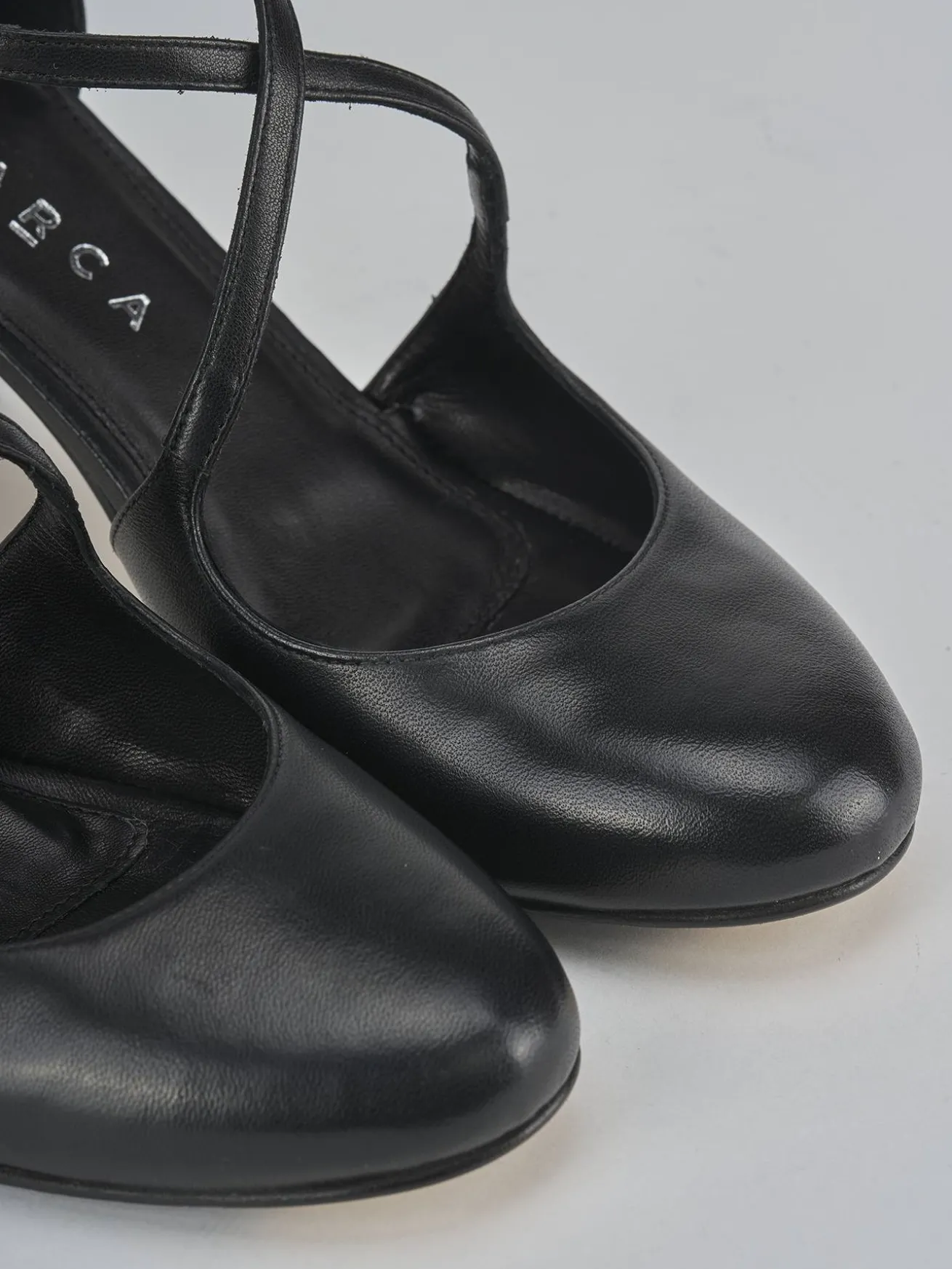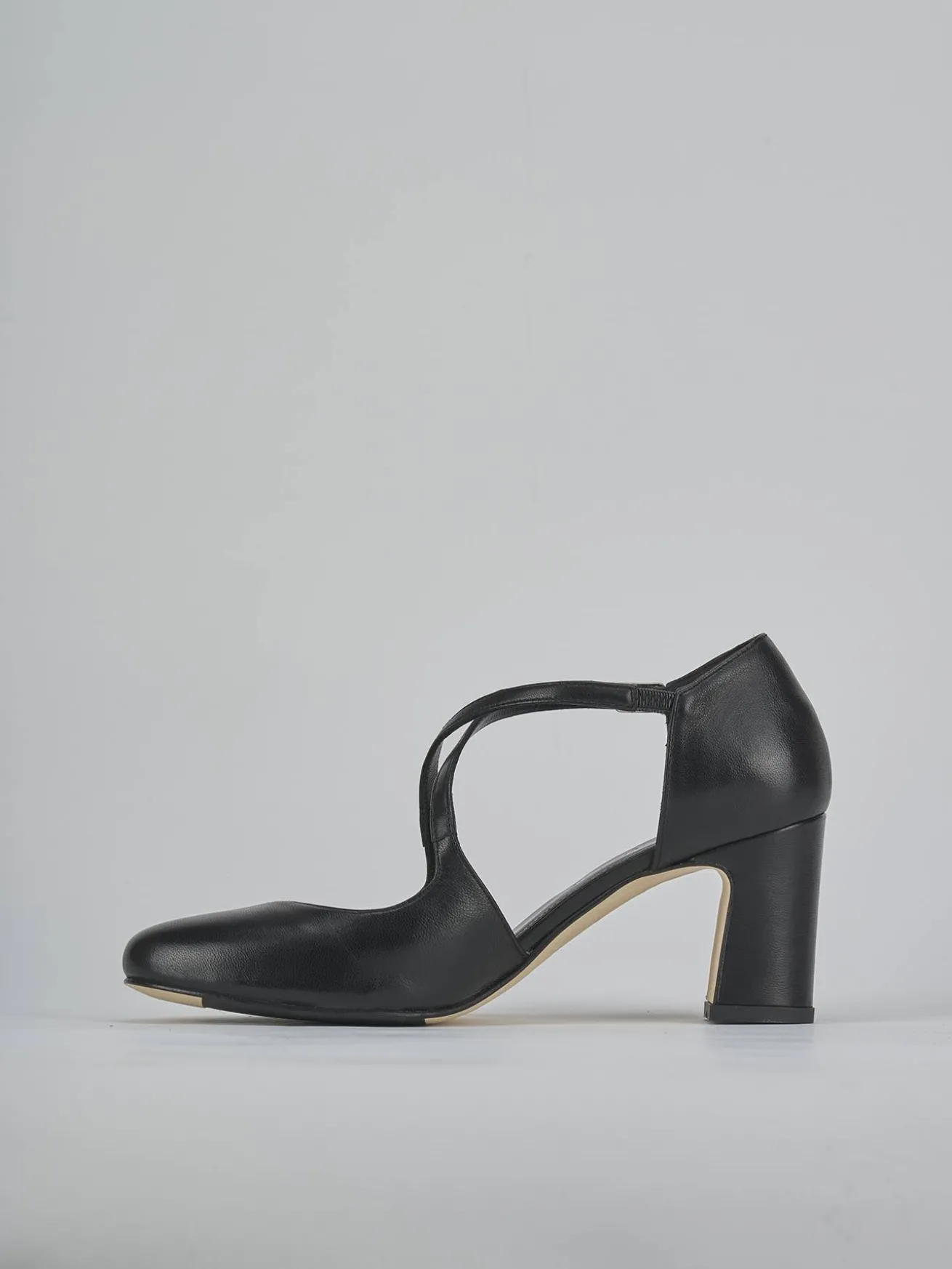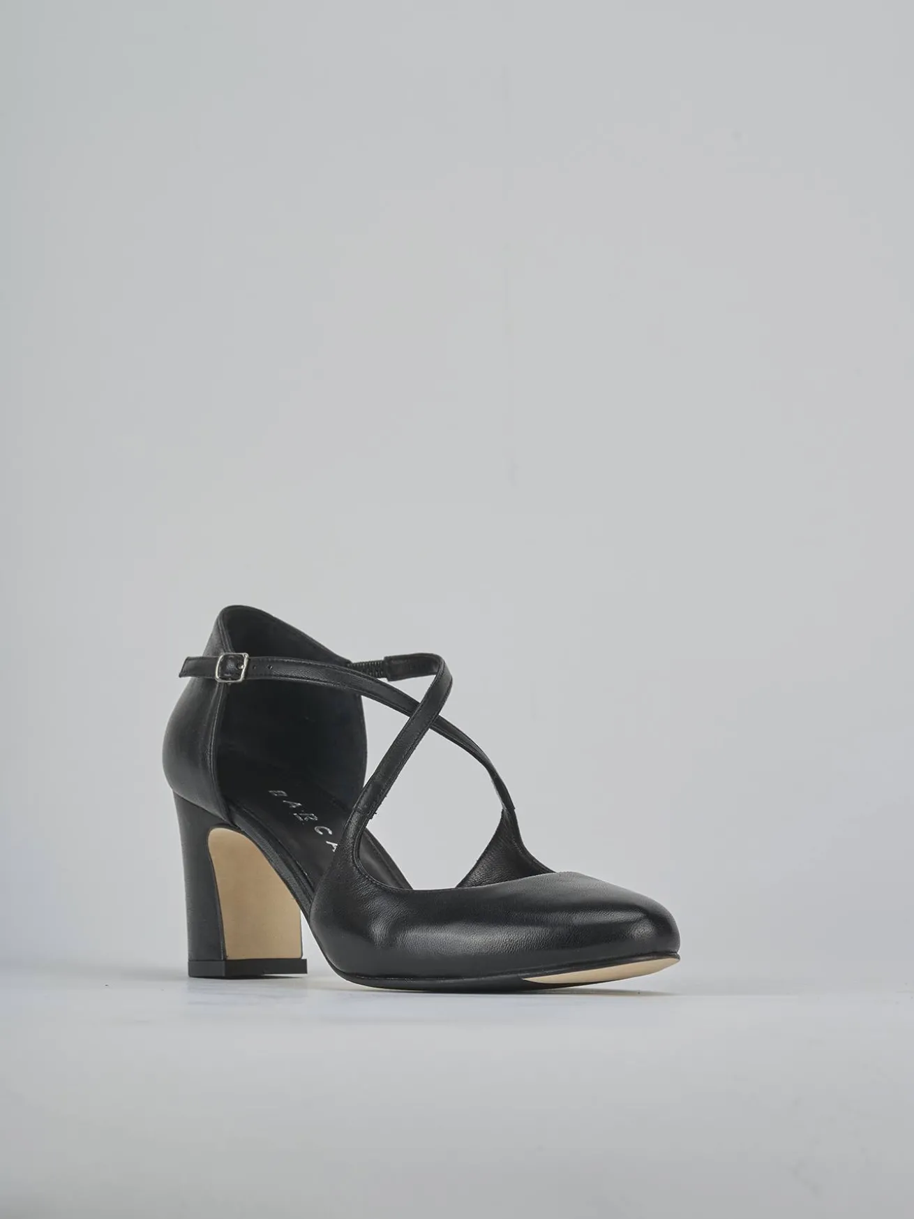 Bebe’ tacco 7 cm fondo in leggerissima gomma e soletto interno in vera pelle. Tomaia in morbida pelle, punta affusolata, scollo a ‘U’, cinturino incrociati sul collo del piede con fibbia regolabile e tacco dritto per un look cool.