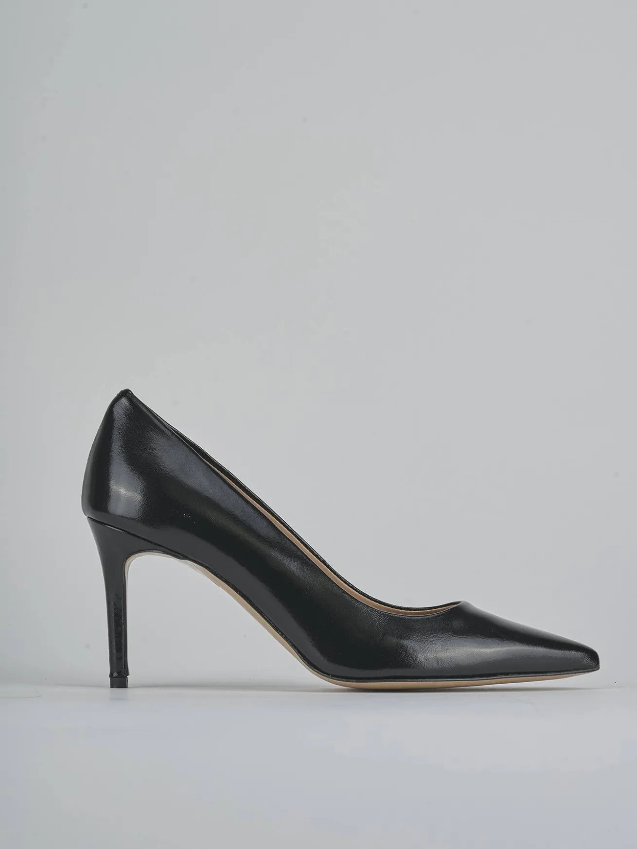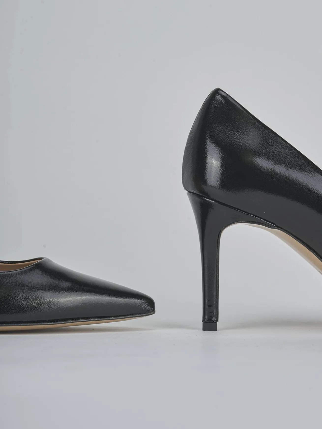 Realizzate in vernice nera, la tomaia in morbida pelle effetto verniciato dona un aspetto lucido e sofisticato.