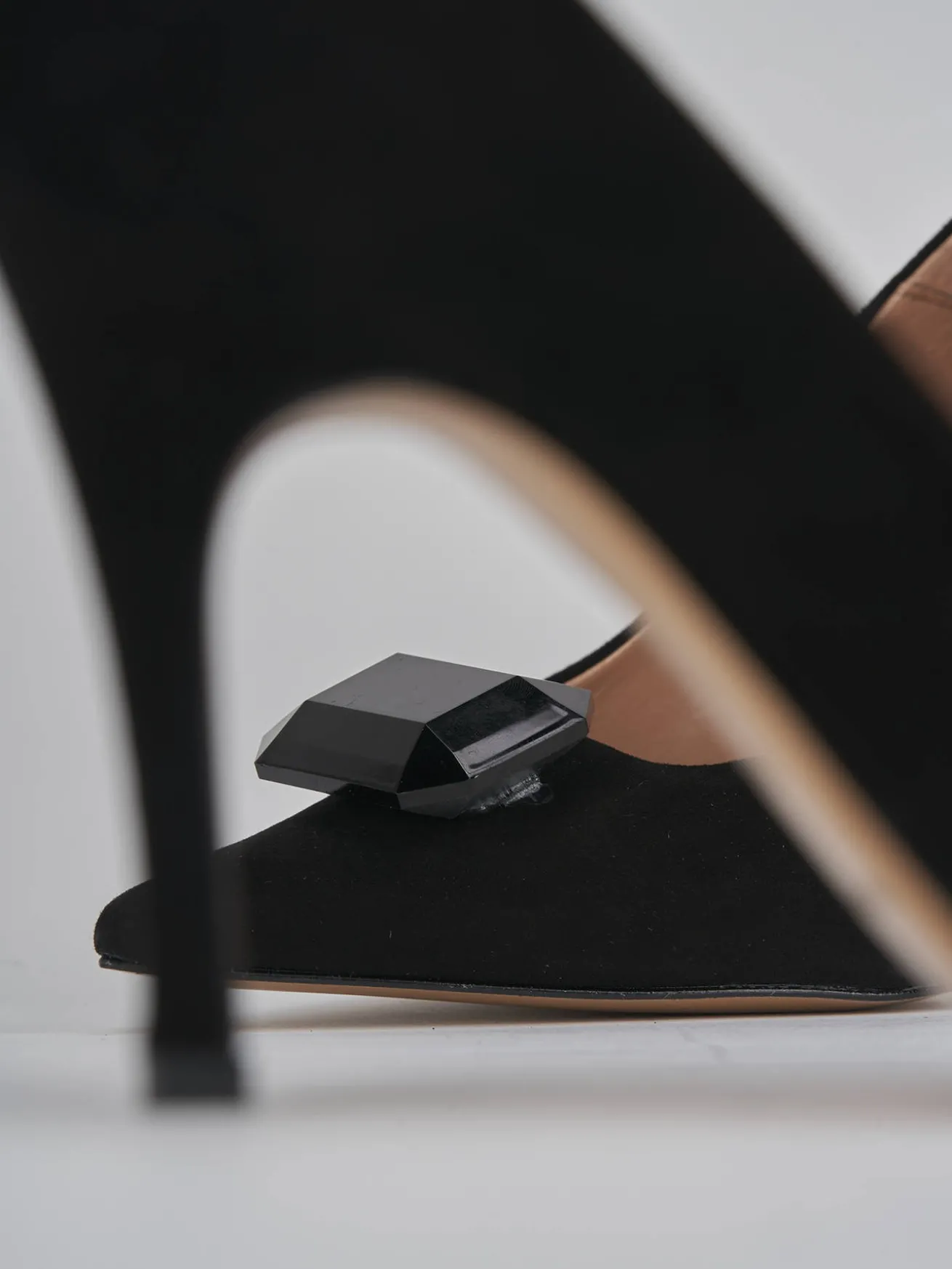 decolte’ tacco 9 cm fondo in cuoio e soletto interno in vera pelle. tomaia in morbido camoscio, punta sfilata, accessorio in punta e tacco fino. versatile sia con un vestito che con un tailleur.