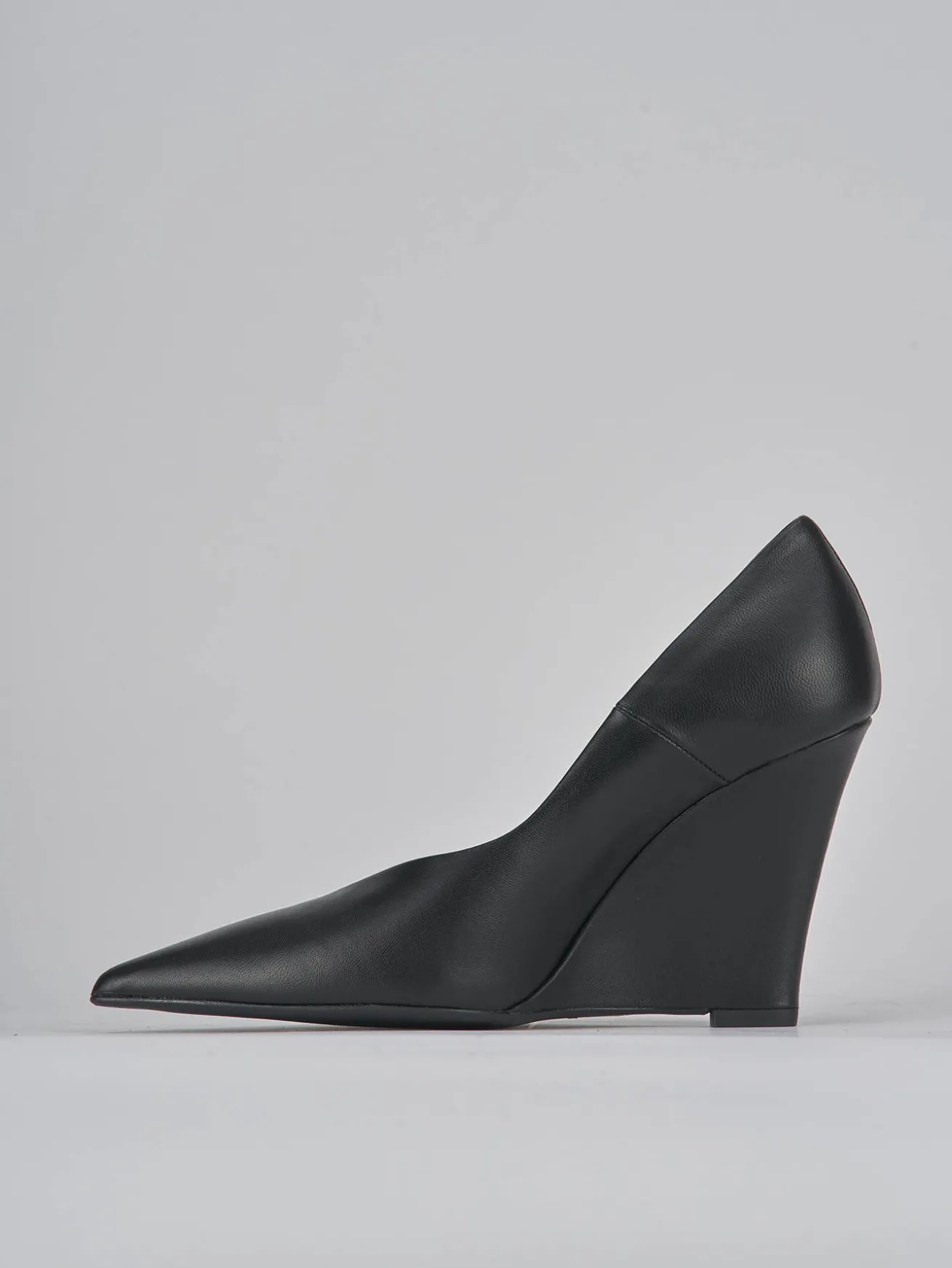 decolte’ zeppa 9 cm fondo in gomma e soletto interno in vera pelle. tomaia in morbida pelle nappata, punta sfilata, apertura a ‘V’ sulla punta, comoda zeppa piena per un look che non passerà inosservato.