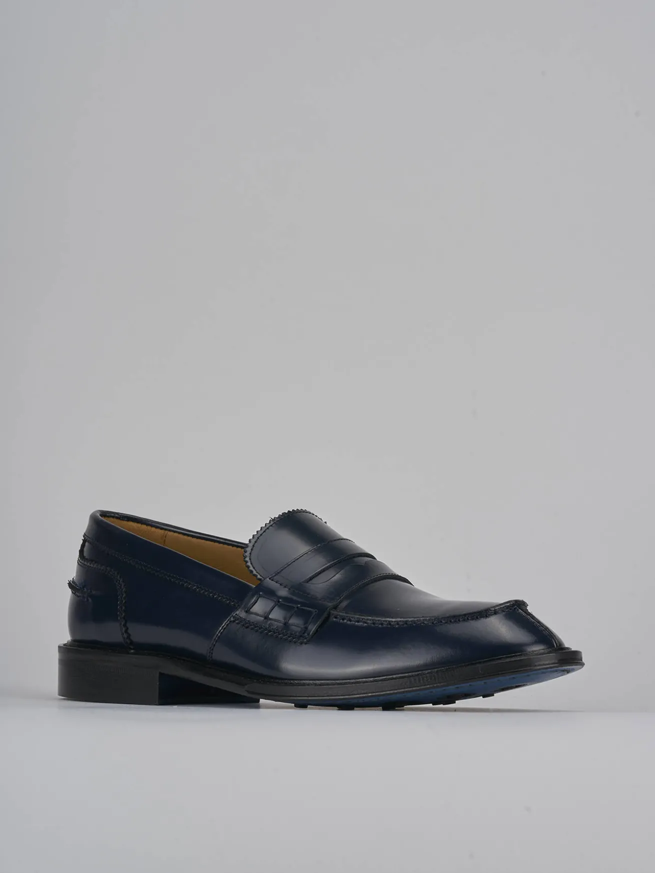 La punta squadrata e le cuciture in rilievo eseguite a mano aggiungono un tocco di sofisticatezza artigianale.