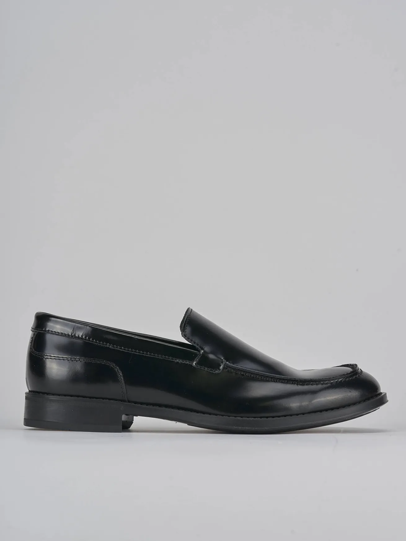 La tomaia in morbida pelle liscia con effetto lucido dona un tocco sofisticato, mentre la punta leggermente squadrata e le cuciture visibili aggiungono un dettaglio distintivo.