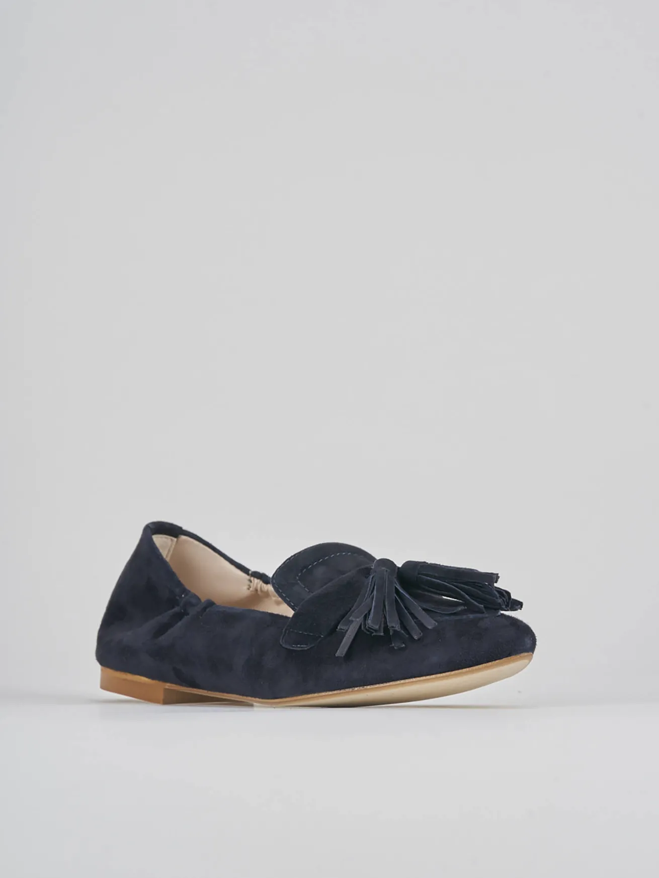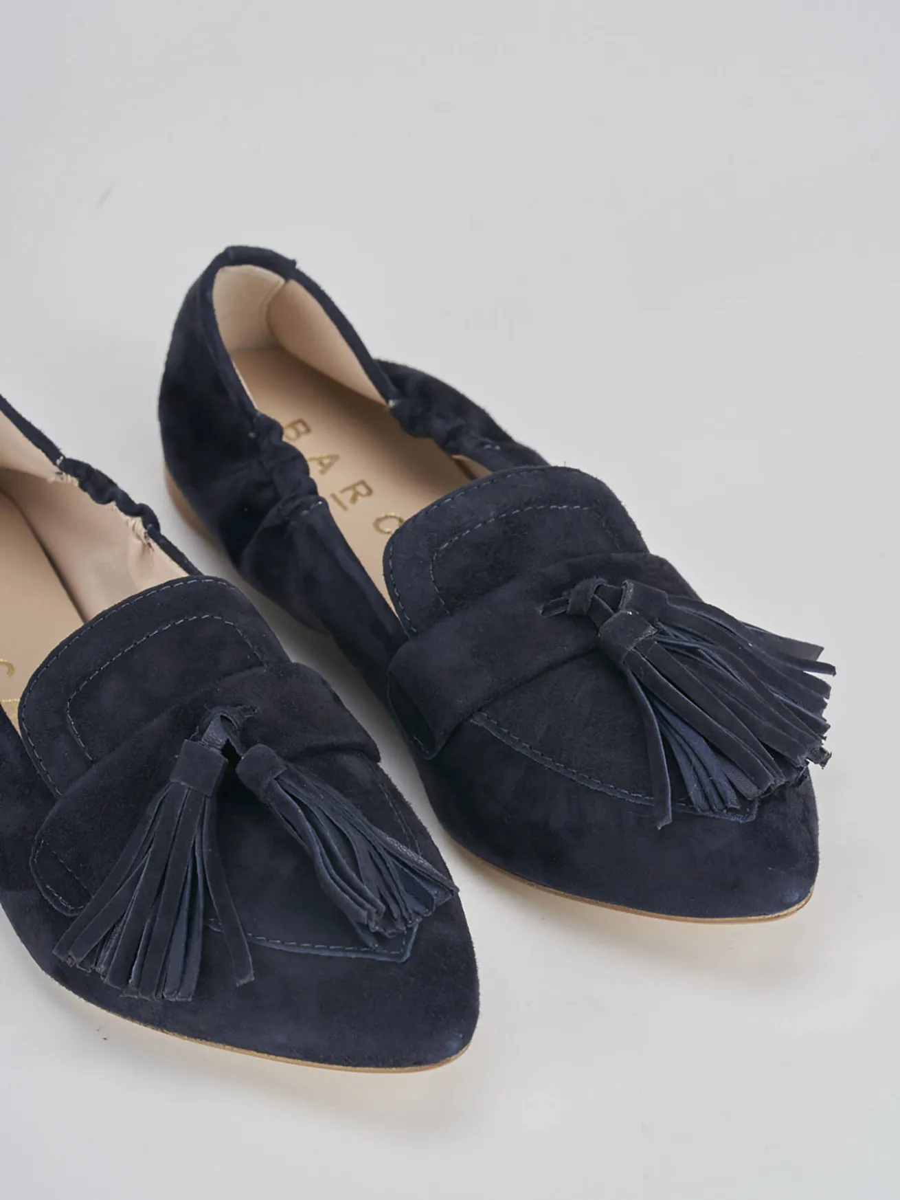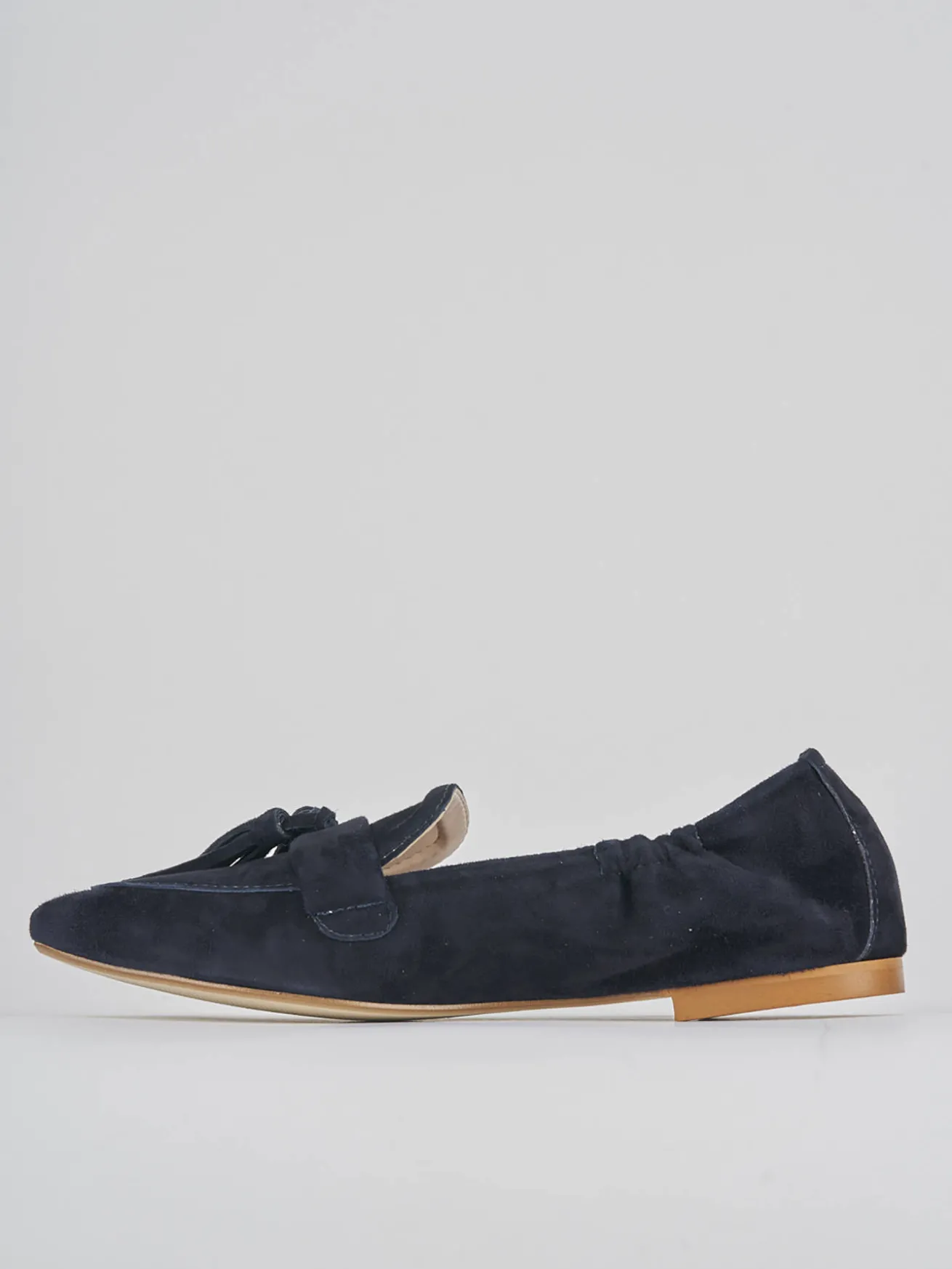 La tomaia è realizzata in morbido camoscio blu, con una punta sfilata che aggiunge un tocco di raffinatezza.