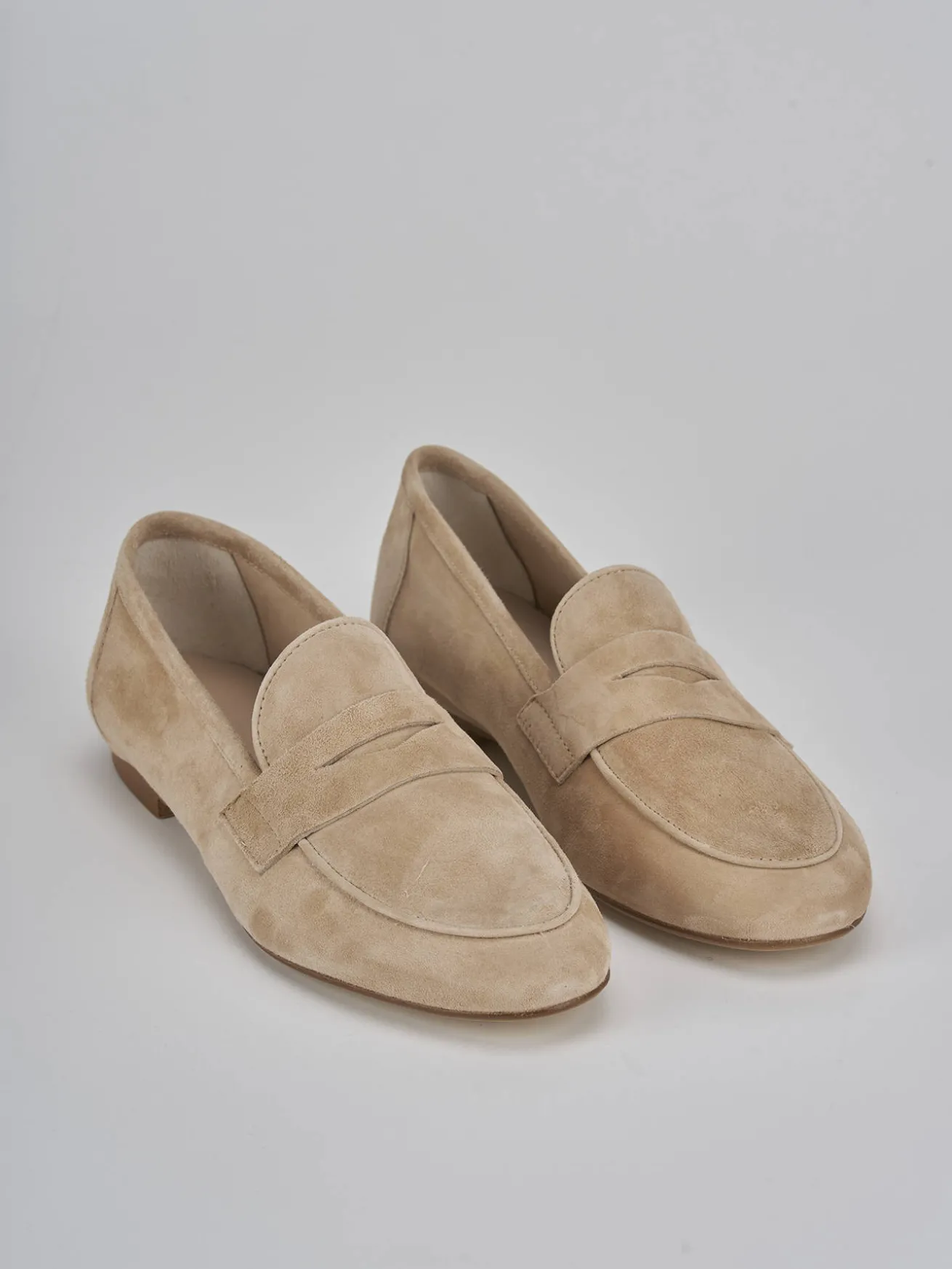 La tomaia in morbido camoscio avvolge il piede con delicatezza, mentre la punta affusolata e le cuciture visibili aggiungono un tocco di carattere.