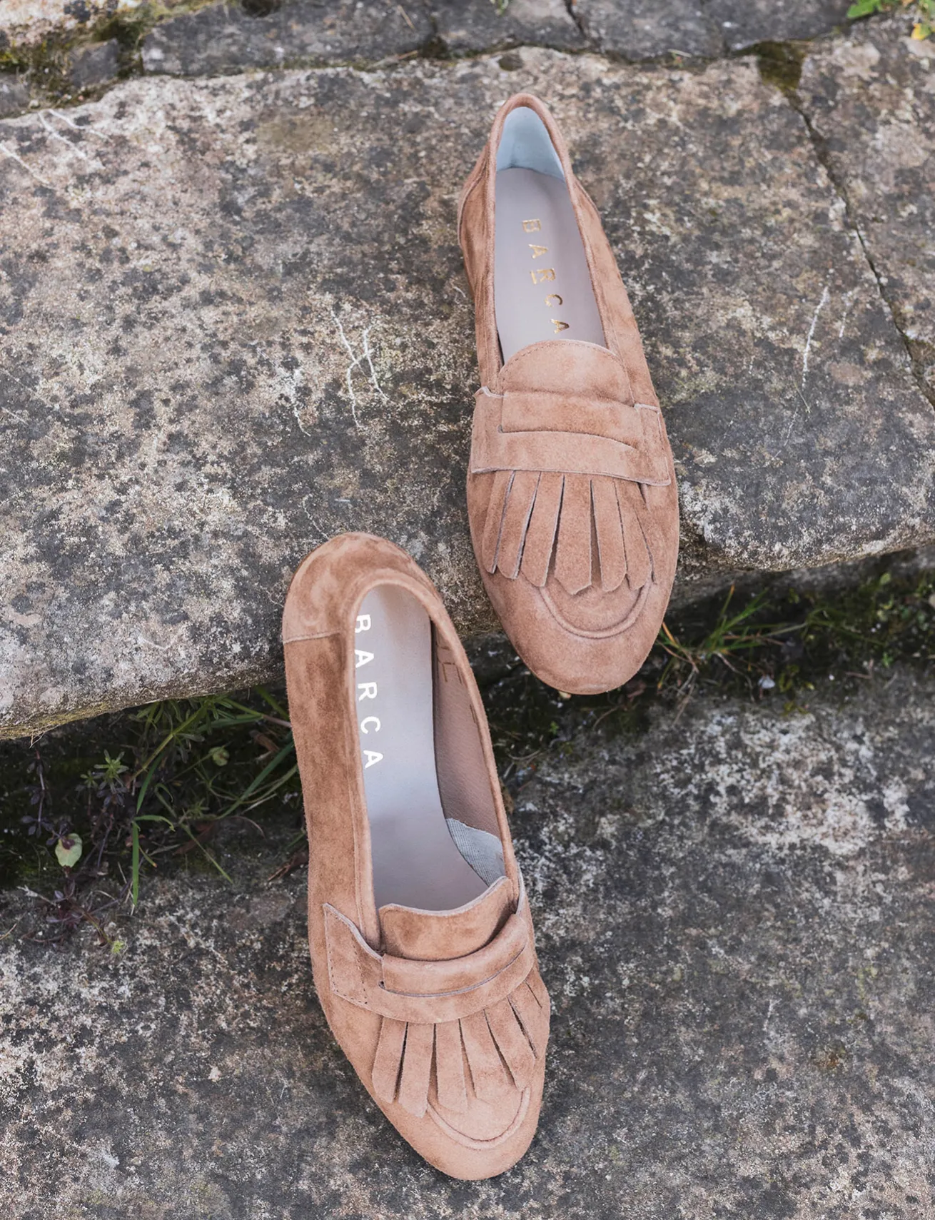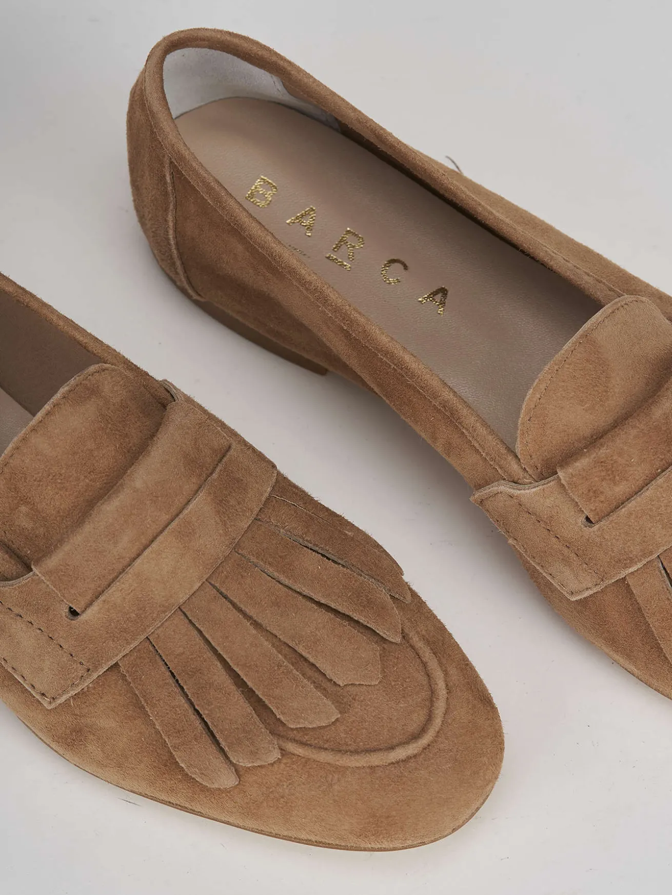 Realizzati in morbido camoscio marrone, questi mocassini dal tacco di 1 cm offrono una comodità senza pari.