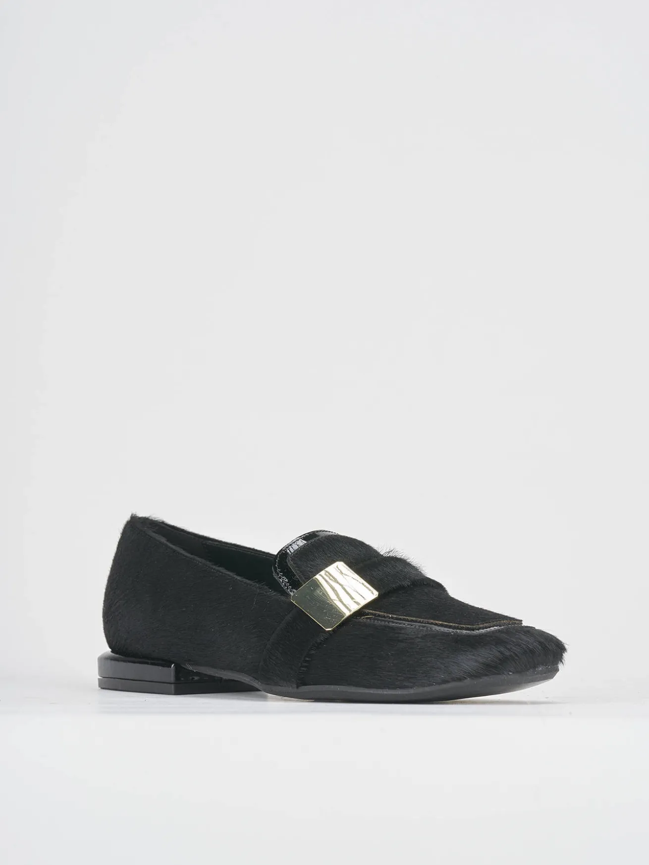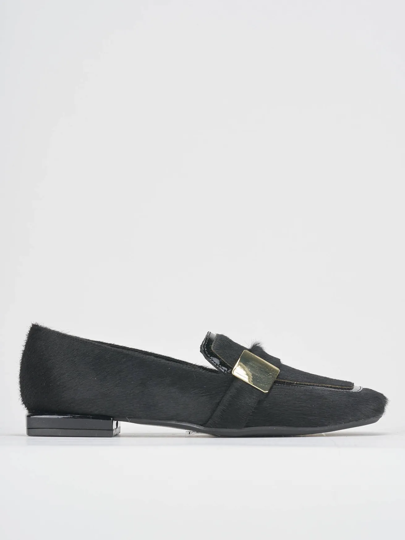 La tomaia è realizzata in morbida pelle ricoperta in cavallino, offrendo un tocco di lusso e raffinatezza.