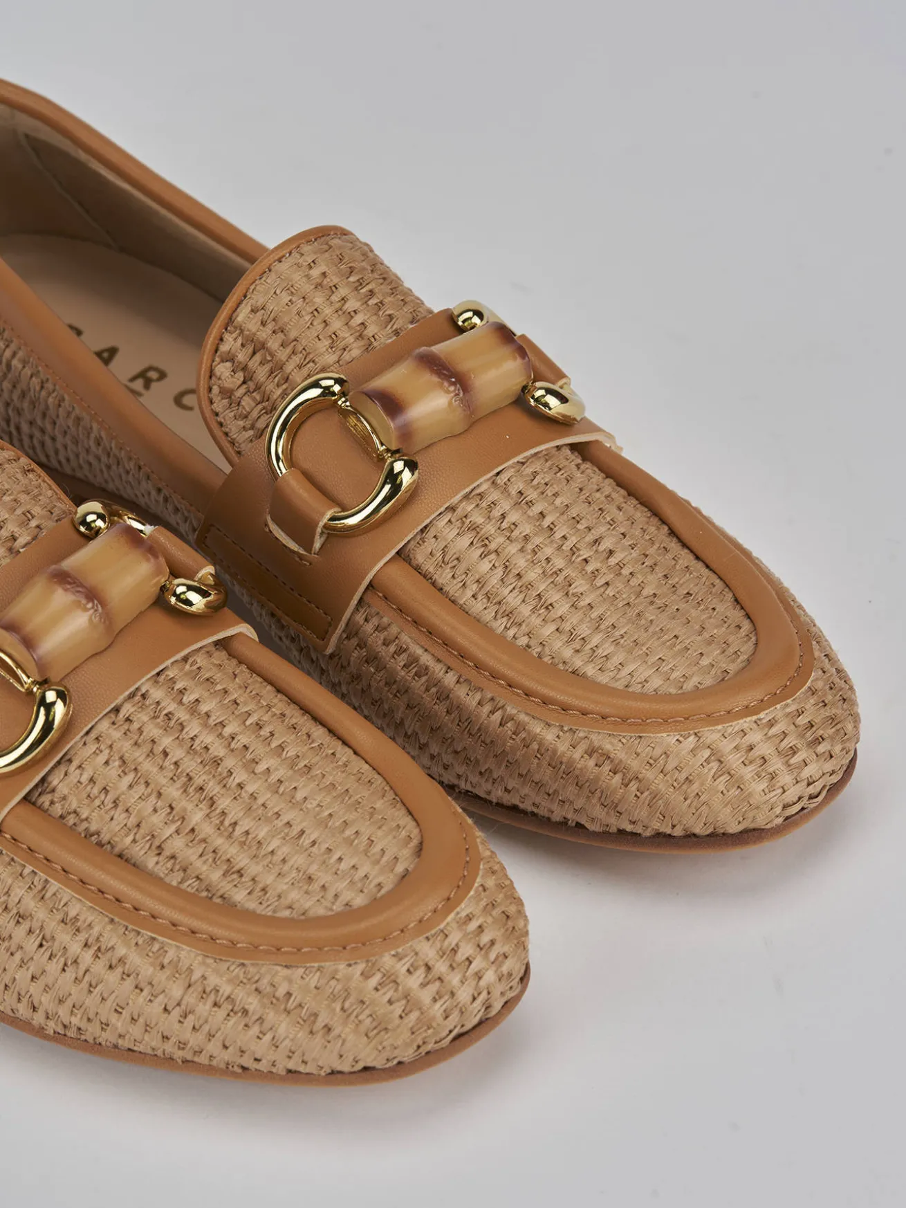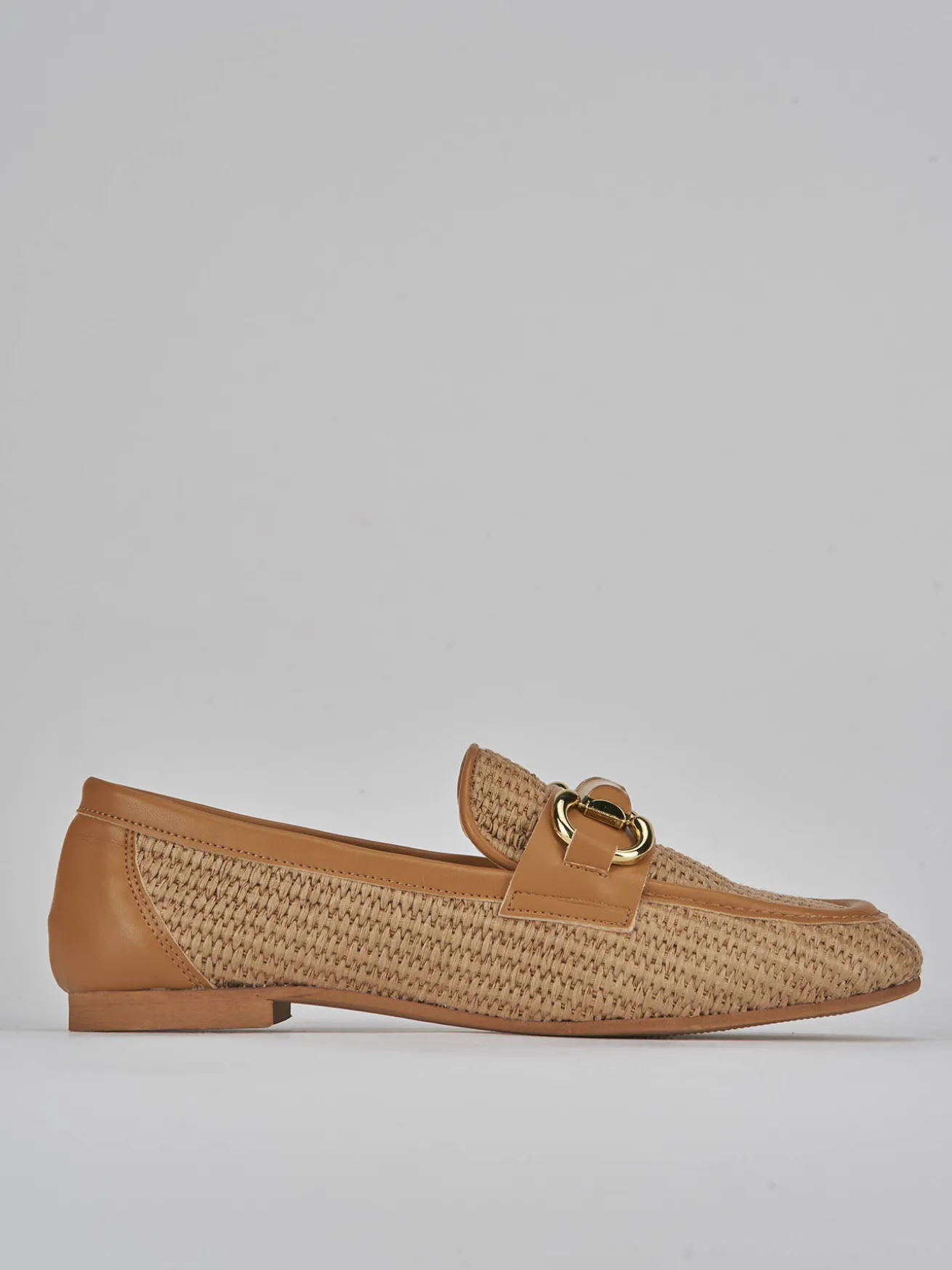 La tomaia è realizzata in morbida pelle e raffia, offrendo un design sofisticato e moderno.