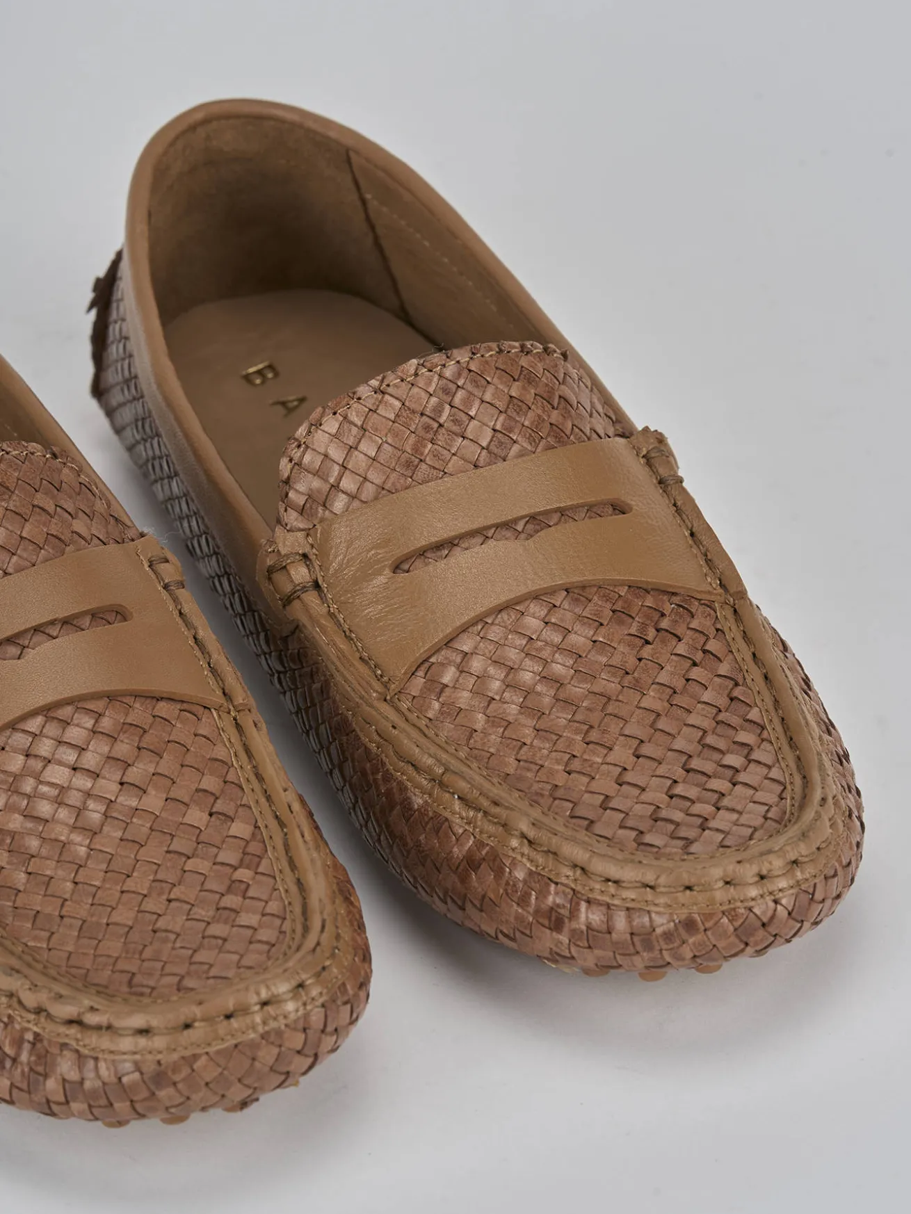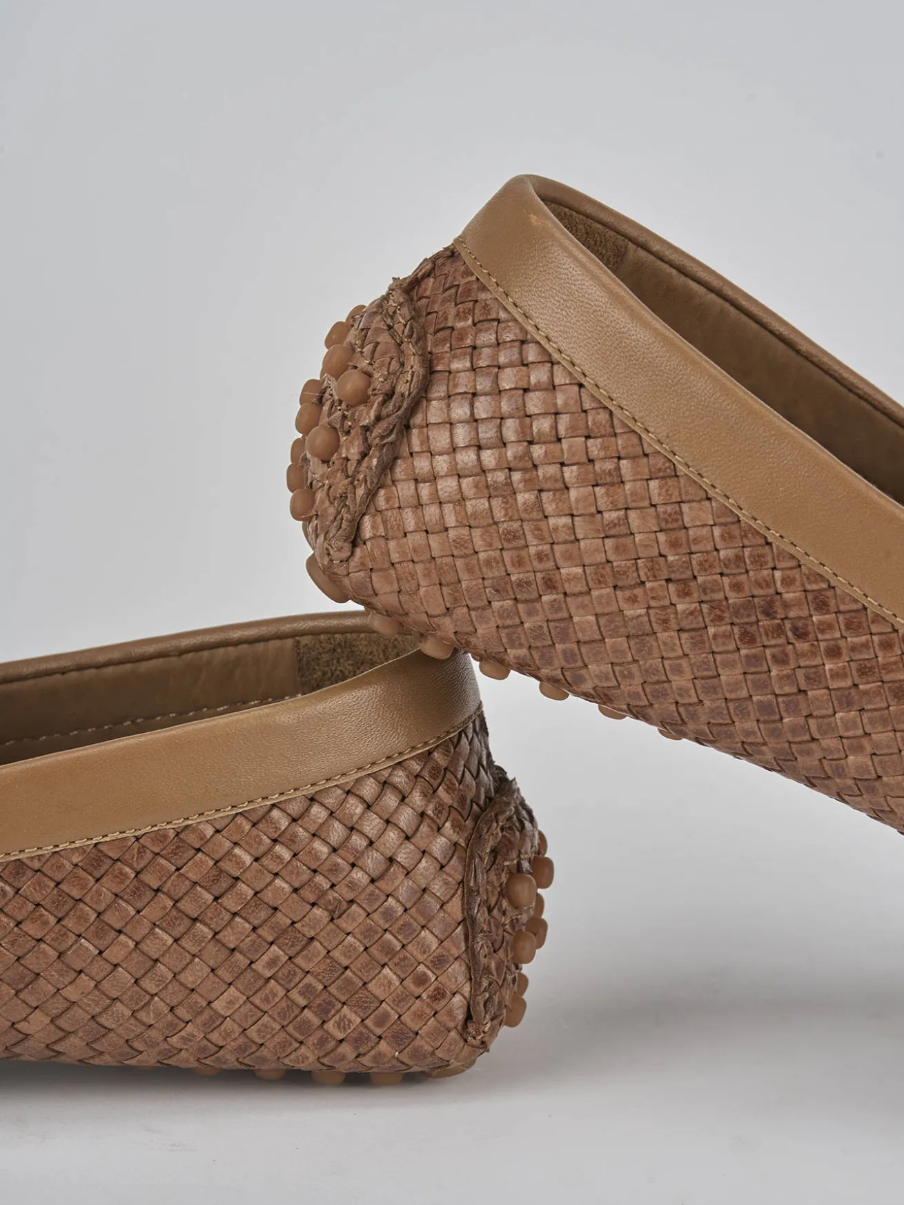 La tomaia in morbida pelle intrecciata regala un tocco di eleganza e artigianalità, mentre la punta leggermente squadrata e le cuciture a vista aggiungono dettagli sofisticati e moderni.