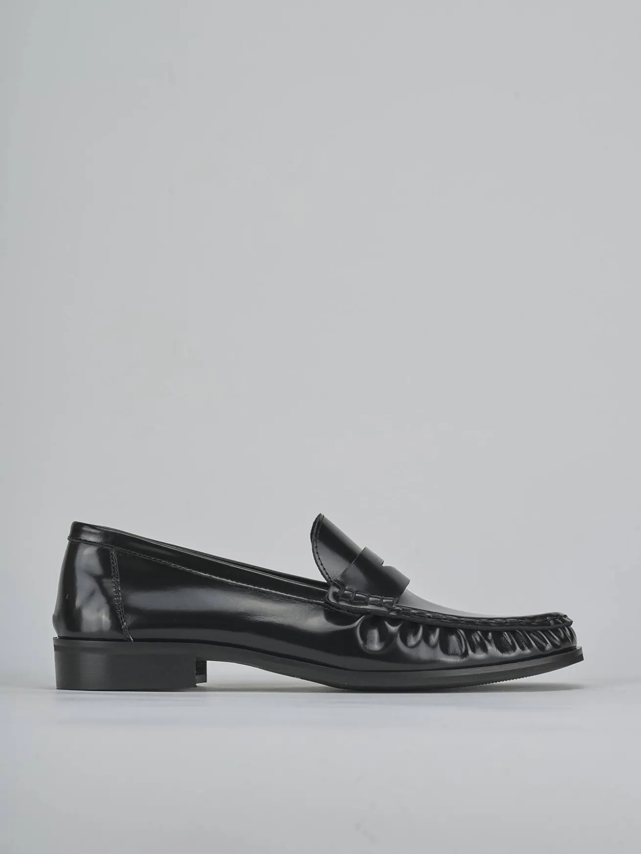 Realizzati in morbida pelle abrasivata, presentano una punta affusolata e dettagli di cuciture a mano che ne esaltano l’artigianalità.