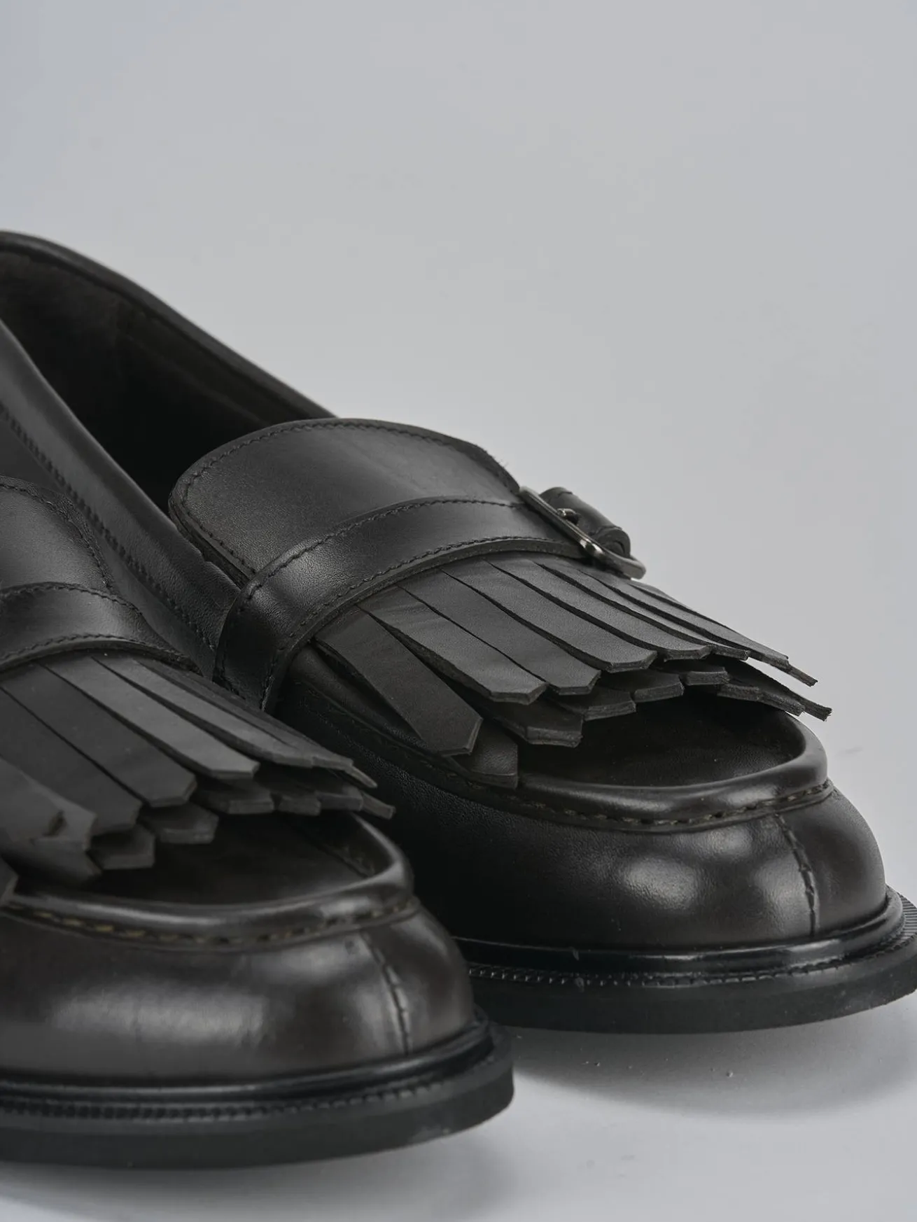 Le frange e la piccola fibbia regolabile donano un punto luce, rendendo questi mocassini un accessorio versatile per ogni occasione.