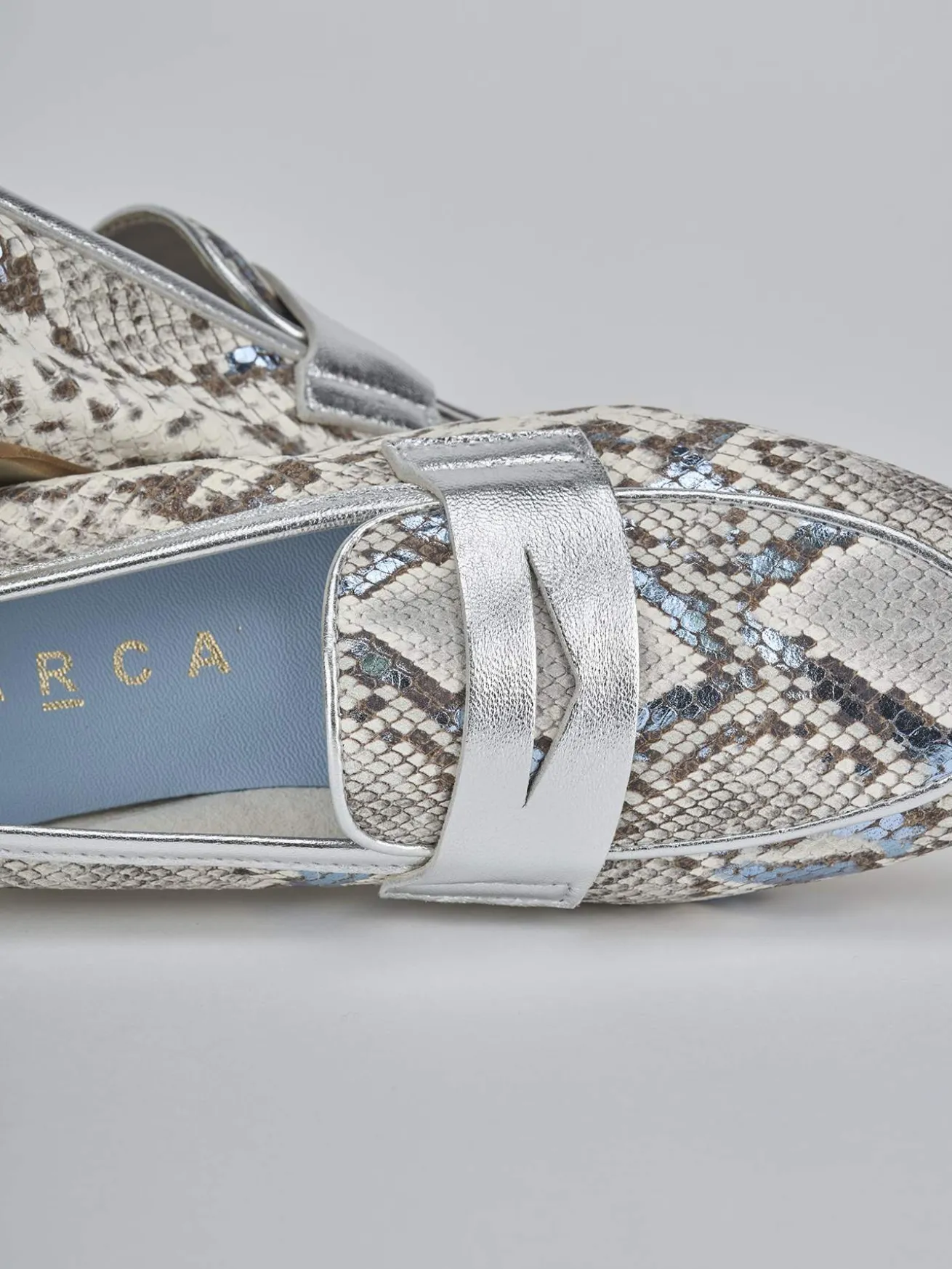La tomaia è realizzata in morbidissima pelle con una raffinata stampa pitonata argento, che aggiunge un tocco di glamour al tuo outfit.