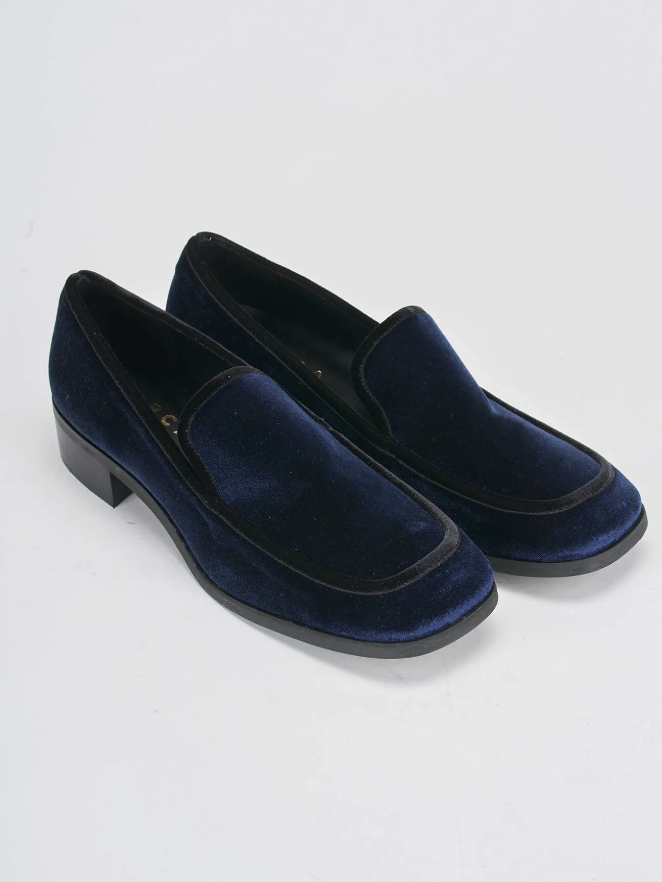 La tomaia in morbido velluto avvolge il piede in un abbraccio di lusso, mentre la punta squadrata aggiunge un tocco moderno e sofisticato.