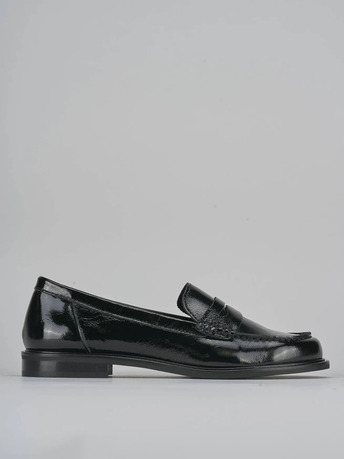 La tomaia in morbida pelle effetto verniciato aggiunge un tocco di lucentezza, mentre la punta leggermente squadrata conferisce un aspetto moderno e sofisticato.