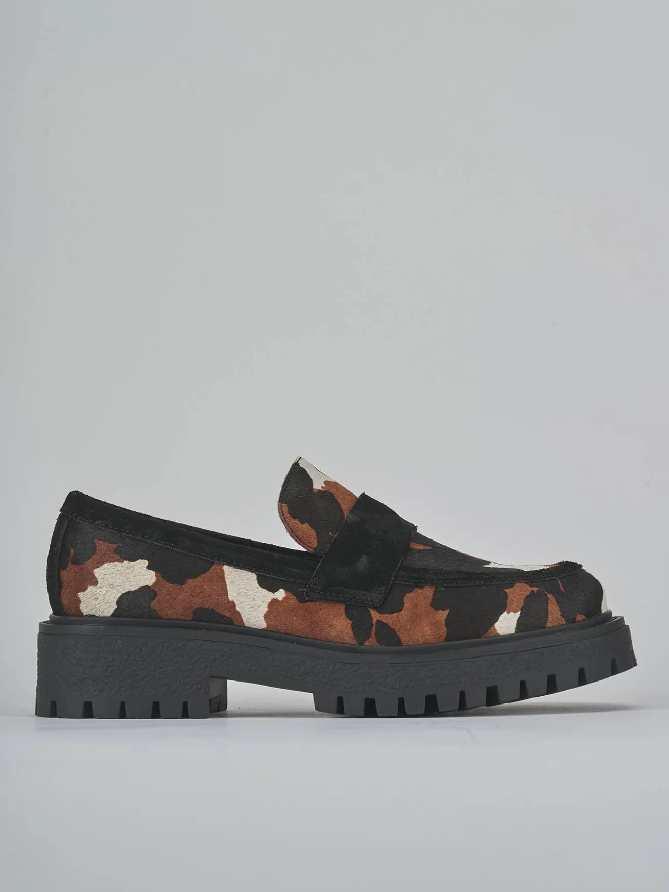 La tomaia è realizzata in morbida pelle, foderata in cavallino con una stampa muccata che aggiunge un tocco di originalità al tuo look quotidiano.