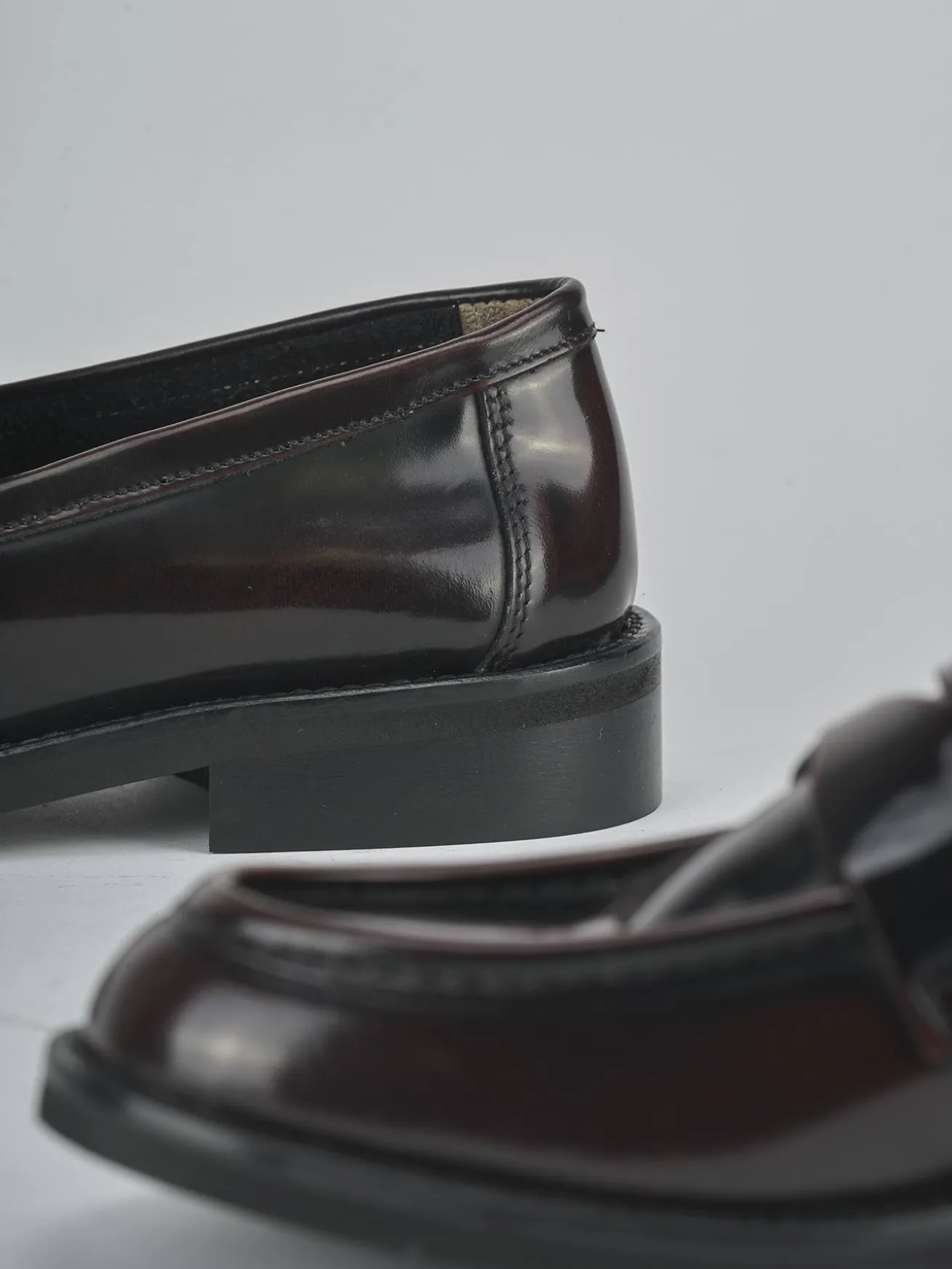 Realizzato con una morbida pelle abrasivata di un raffinato colore bordò, questo mocassino è ideale per la donna che cerca praticità e classe in un unico accessorio.