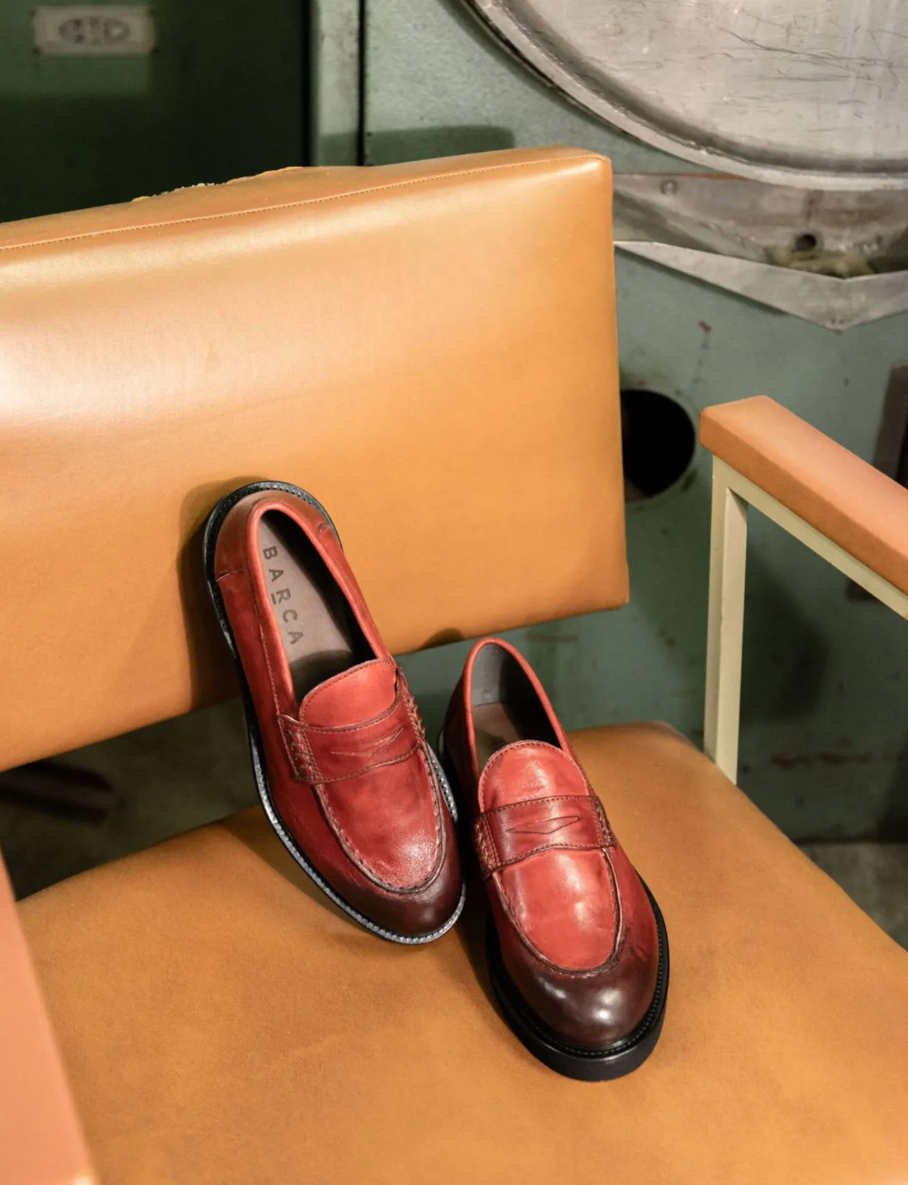 Realizzati con una tomaia in morbida pelle anticata, questi mocassini presentano una punta tonda e cuciture in rilievo che aggiungono un tocco di classe.