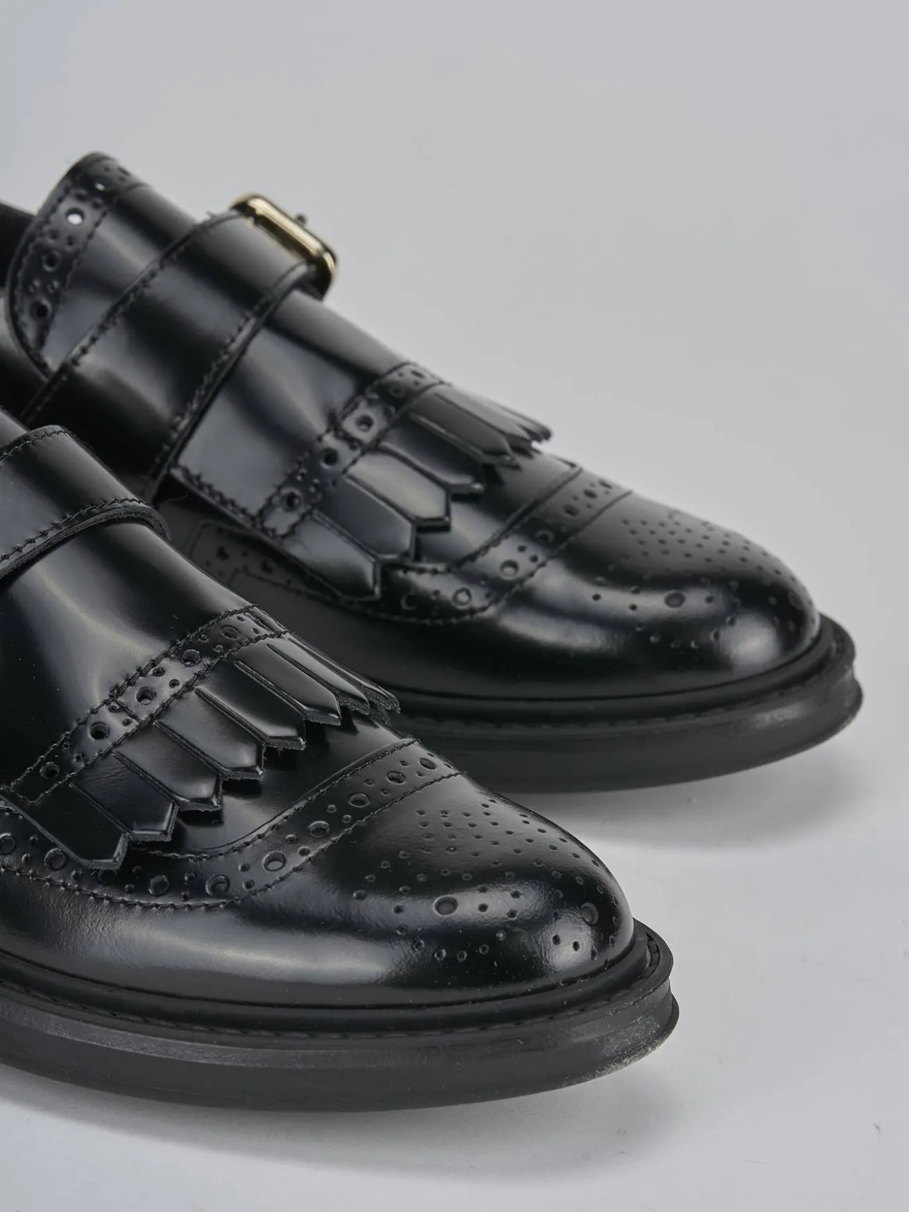 La lavorazione inglese è evidente nei dettagli, mentre la particolare frangia sul collo del piede, completata da una fibbia regolabile, dona un carattere distintivo.